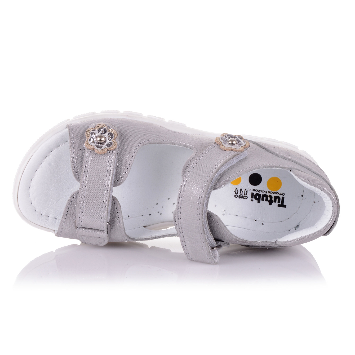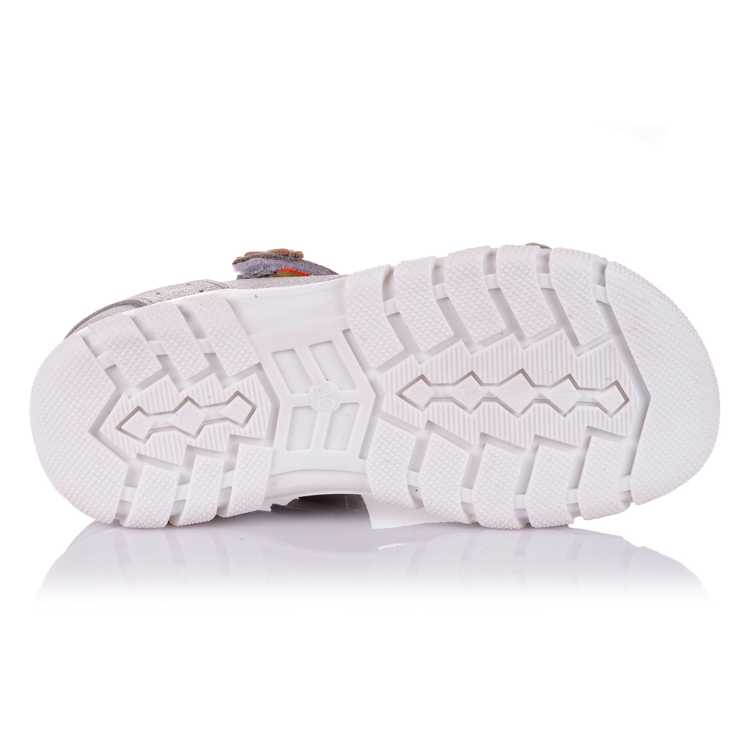 Модные босоножки из эксклюзивного серего нубука. Удобная фиксация на две липучки позволяет подобрать обувь на ногу разной полноты и высоты свода. Стелька с супинатором, твердый задник, углубление и защитная поддержка передней части стопы обеспечивают физиологически правильное положение ножки. Анатомическая износостойкая подошва из термокаучука с антишоковыми вставками, которые снимают ударную нагрузку на пяточную кость. Такая модель идеально подойдет для ежедневных прогулок.