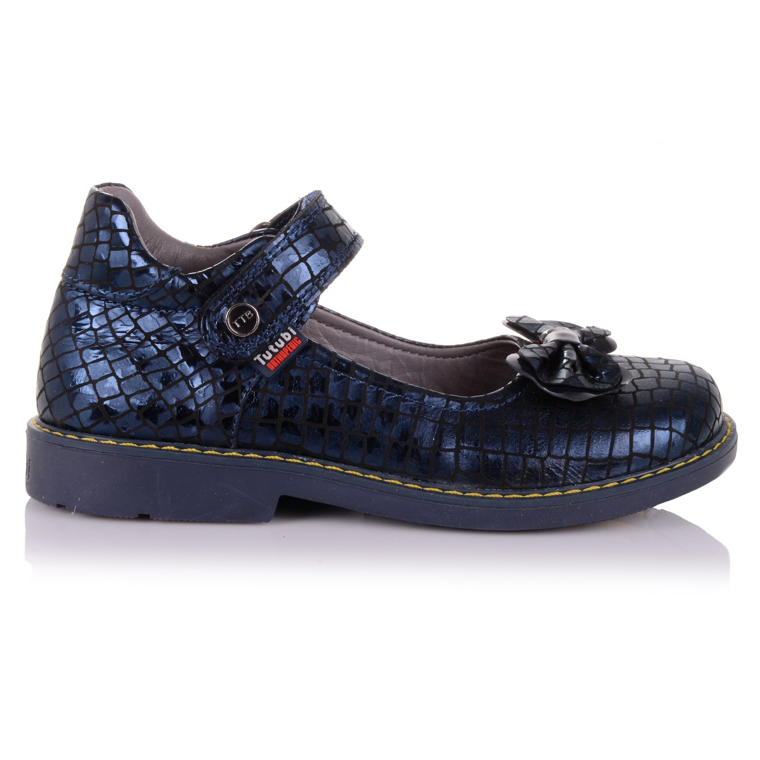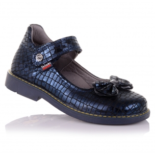 Супер-стильные ортопедические туфли для девочки из эксклюзивного тисненного нубука темно-синего цвета. Удобная фиксация на липучку позволяет подобрать обувь на ногу разной полноты и высоты свода. Дышащая стелька с супинатором и твердый задник обеспечивают физиологически правильное положение ножки. Подошва, износостойкая из термокаучука, со скошенным каблуком Томаса и антишоковыми вставками, которые снимают ударную нагрузку на пяточную кость. Одевая такую пару обуви, Ваш ребенок будет чувствовать себя комфортно и эксклюзивно.