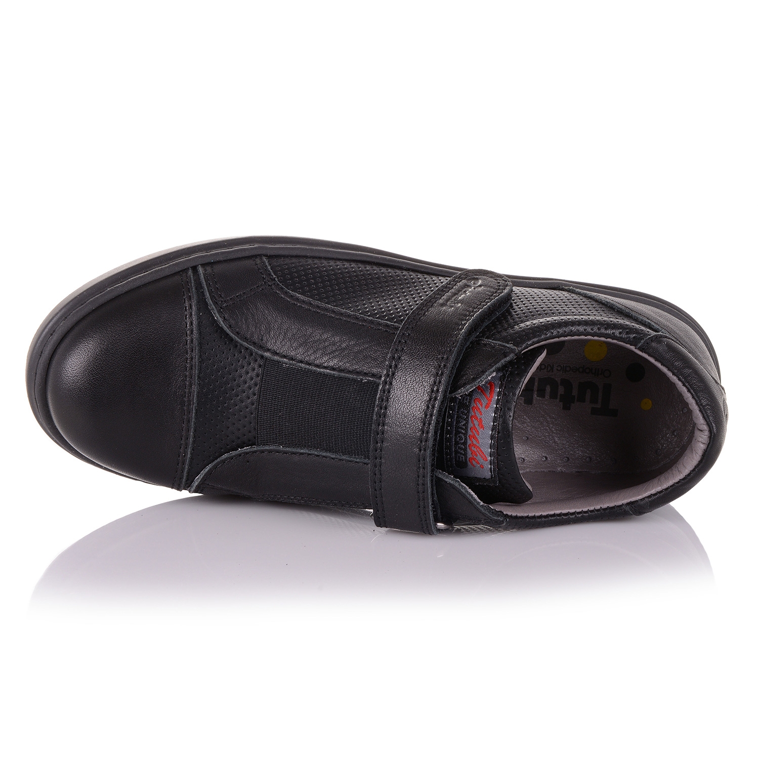 Очень мягкие и удобные мокасины черного цвета из натуральной кожи с перфорацией (не сквозная), смотрятся очень достойно и дорого. Нога отлично фиксируется липучкой и резинкой. Внутренняя кожаная стелька "SOFT EFFECT" с супинатором, мягкой прослойкой в пяточной части поддержит свод стопы и поспособствует здоровому развитию мышц, а твердый задник обеспечивают физиологически правильное положение ножки. Анатомическая износостойкая подошва из термокаучука очень мягкая и амортизирует, обеспечивая комфортную походку и хорошее сцепление с твердой поверхностью. Обувь такого качества и дизайна приковывает взгляды!