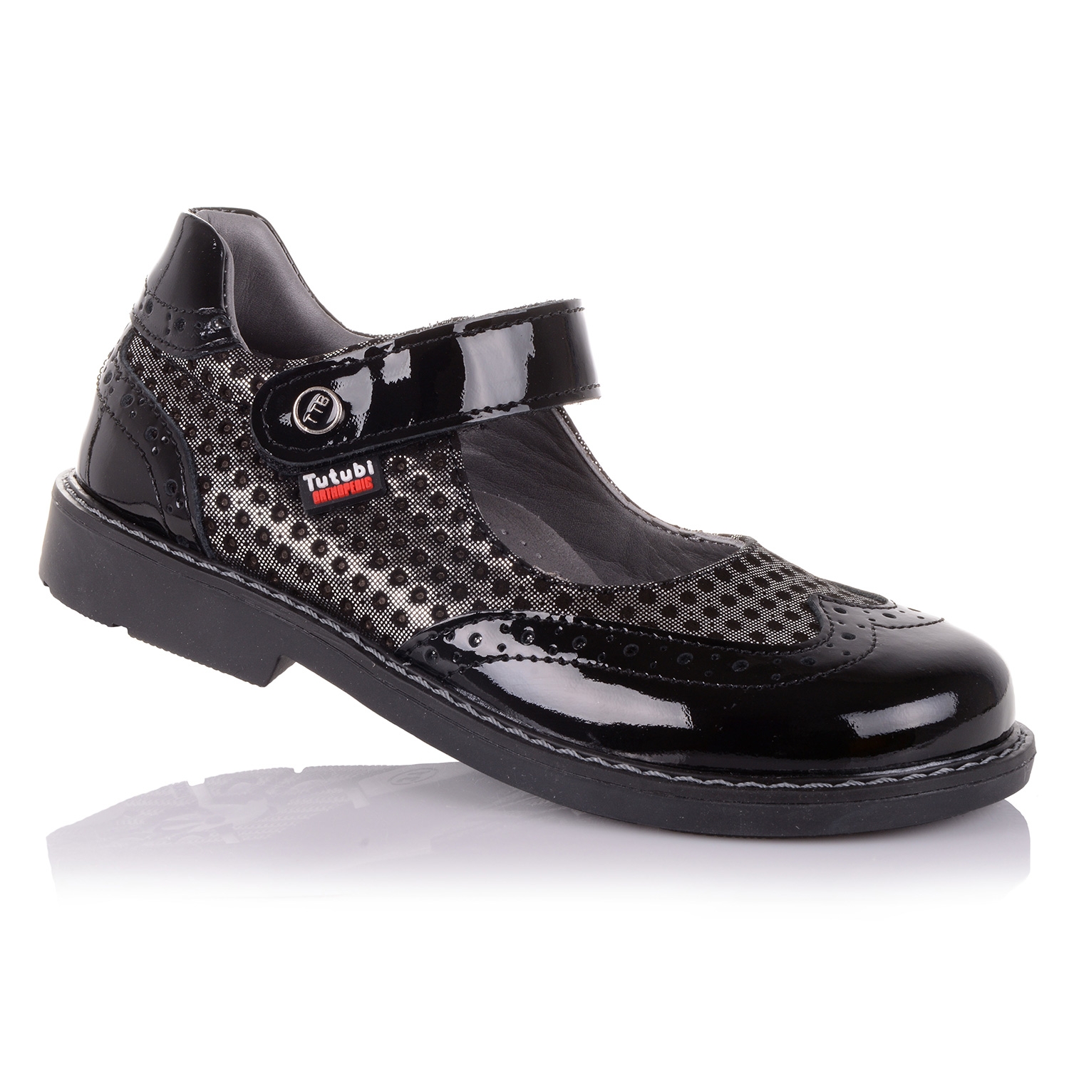 Мега-модные ортопедические туфельки для девочки из эксклюзивной лаковой кожи с тисненным принтом на нубуке. Удобная фиксация на липучку позволяет подобрать обувь на ногу разной полноты и высоты свода. Дышащая стелька с супинатором и твердый задник обеспечивают физиологически правильное положение ножки. Подошва, износостойкая из термокаучука, со скошенным каблуком Томаса и антишоковыми вставками, которые снимают ударную нагрузку на пяточную кость. Одевая такую пару обуви, Ваш ребенок будет чувствовать себя комфортно и эксклюзивно.