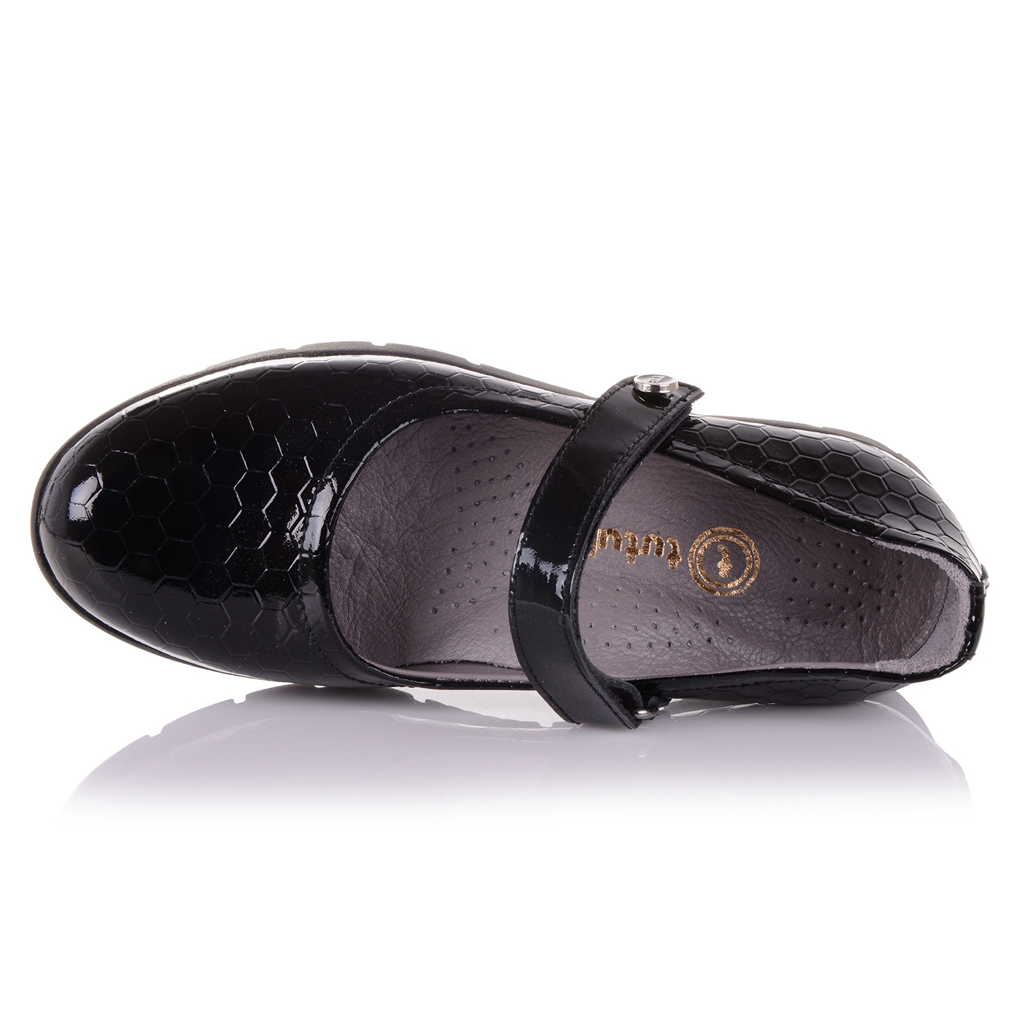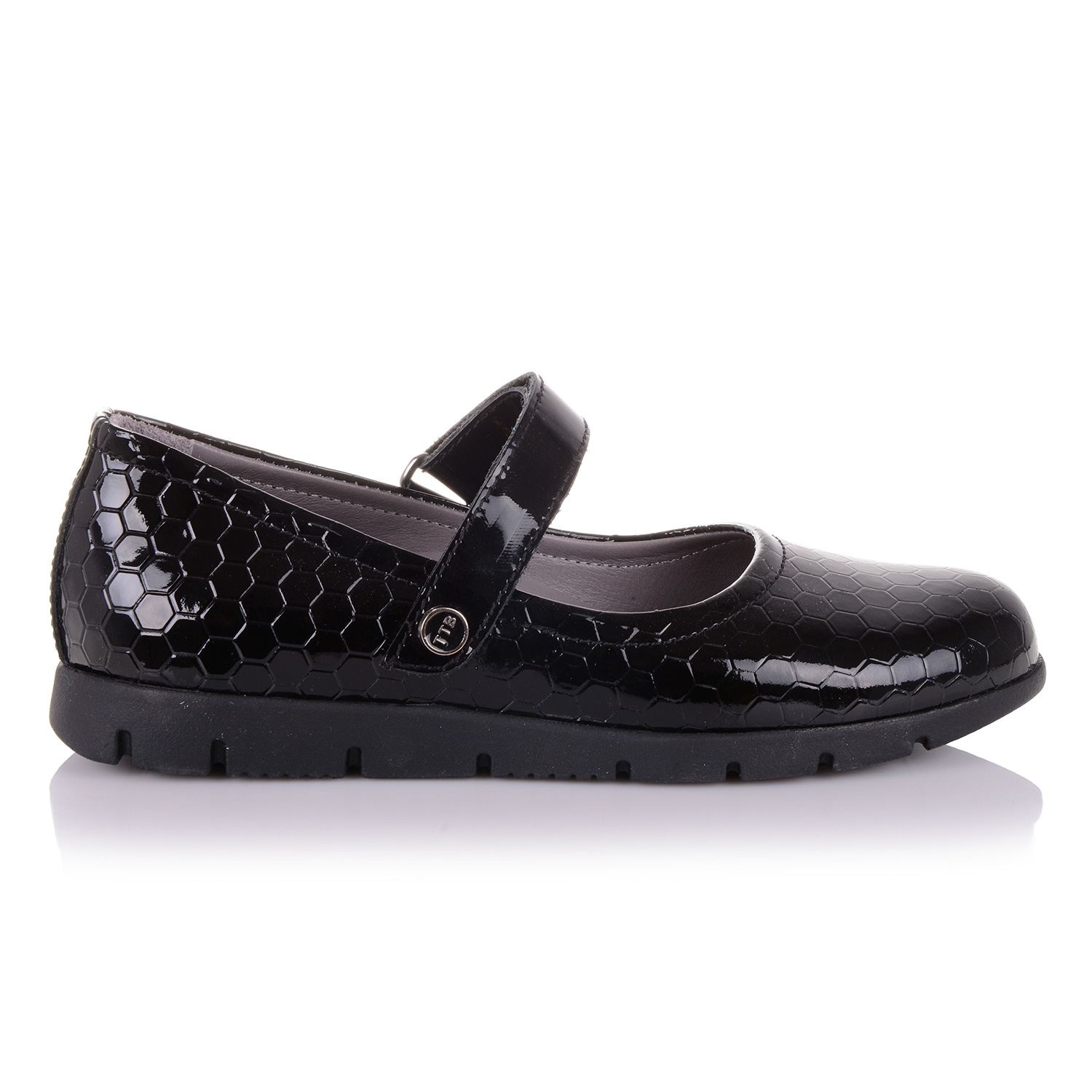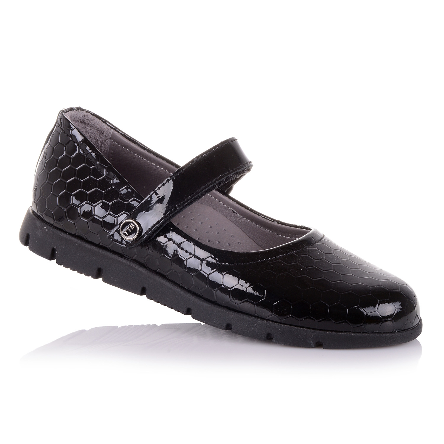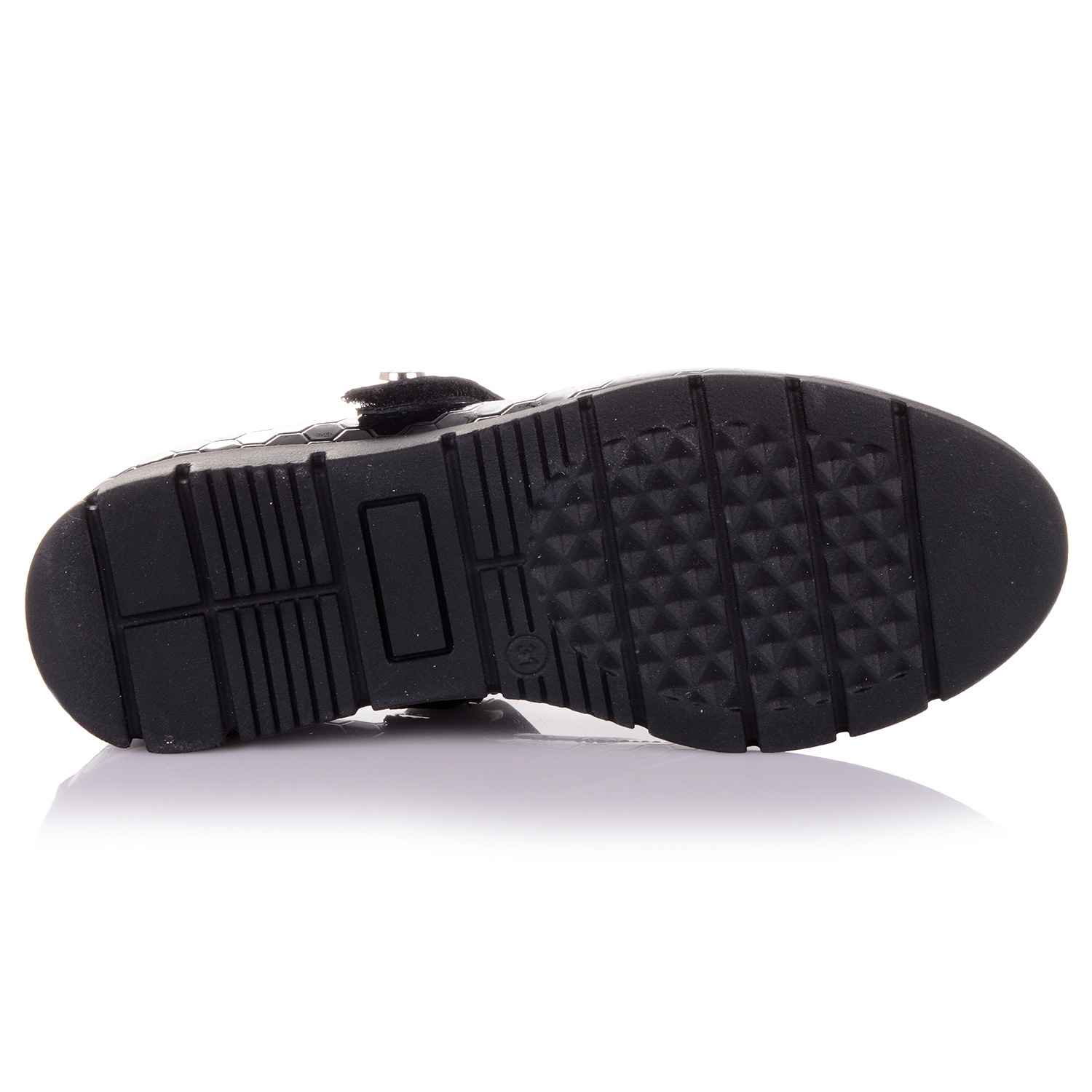 Очень стильные туфли на девочку из натуральной лаковой кожи черного цвета с принтом под питона, станут идеальным дополнением к образу вашей модницы! Внутренняя часть выполнена в коже, внешняя часть- из натуральной лаковой кожи. Удобная фиксация на липучку позволяет подобрать туфли на ногу разной полноты и высоты свода. Анатомическая стелька с твердым супинатором поддержит свод стопы и способствует здоровому развитию мышц. О фиксации голенища и щиколотки позаботится жесткий задник. Подошва, износостойкая из термокаучука. Эти туфли станут неотьемлемой частью гардероба вашего ребенка.