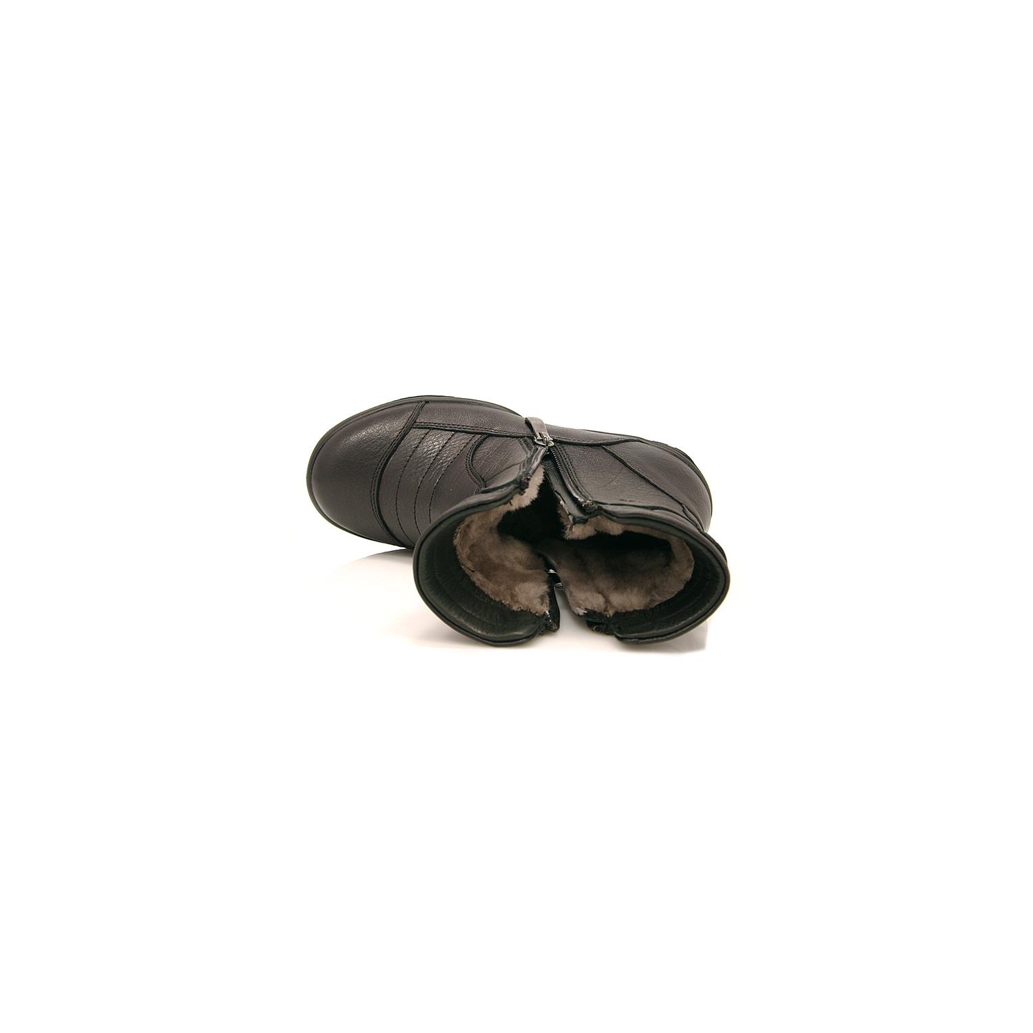 Зимние ботинки черного цвета. Снаружи кожа, внутри мех - натуральная цигейка. С внутренней и внешней стороны на молнии, есть твердая пятка. Высота ботинка 17 - 18,5см (в зависимости от размера).