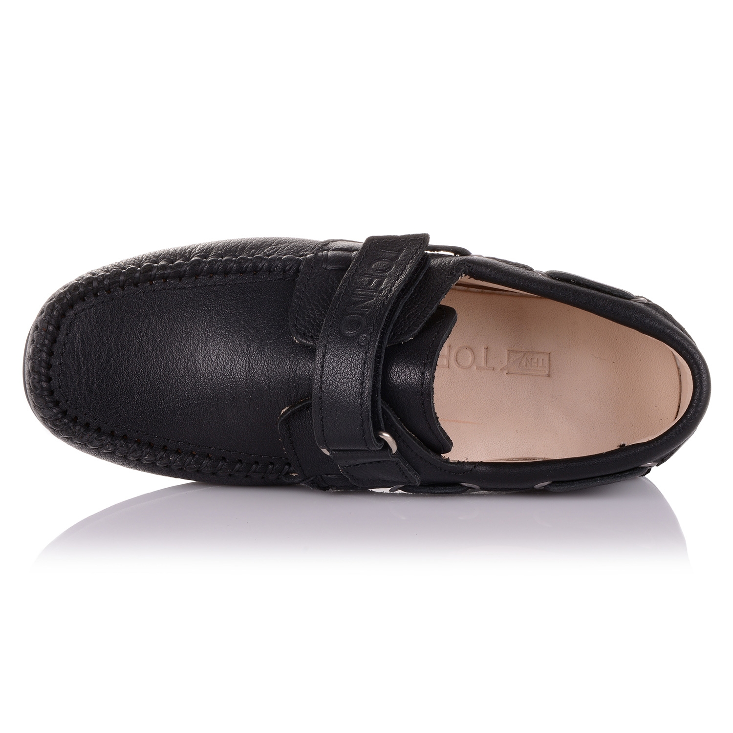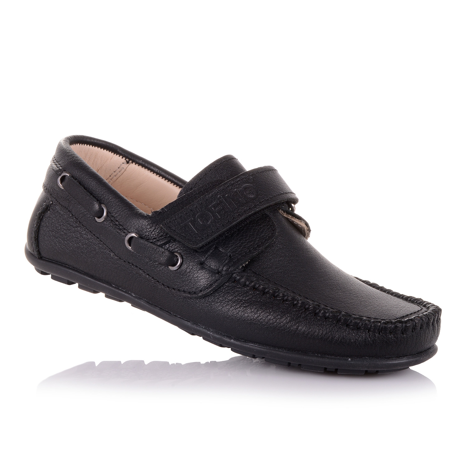Мягкие и удобные мокасины черного цвета из натуральной кожи, смотрятся очень достойно и дорого. Нога отлично фиксируется липучкой. Внутренняя кожаная стелька "SOFT EFFECT" с супинатором, мягкой прослойкой в пяточной части поддержит свод стопы и поспособствует здоровому развитию мышц, а твердый задник обеспечивают физиологически правильное положение ножки. Анатомическая износостойкая подошва из термокаучука очень мягкая и амортизирует, обеспечивая комфортную походку и хорошее сцепление с твердой поверхностью. Обувь такого качества и дизайна приковывает взгляды!