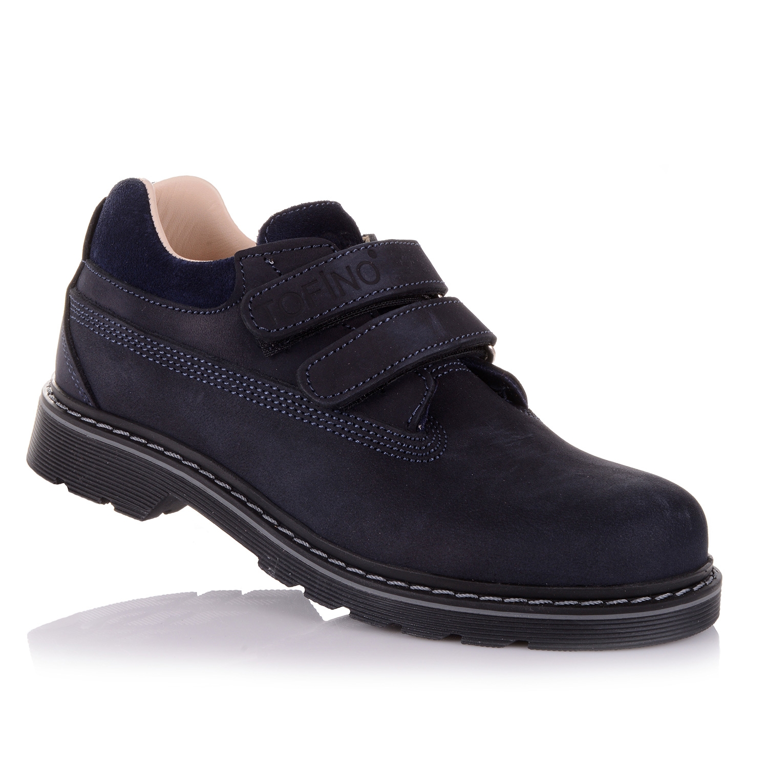Элегантные туфли на мальчика актуальны как к городскому образу, так и к школьной форме. Выполнена модель из натурального нубука темно-синего цвета с вставками из замши. Нога удобно фиксируется двумя липучками. Кожаная анатомическая стелька с твердым супинатором и мягкой прослойкой в пяточной части, поддержит свод стопы и поспособствует здоровому развитию мышц и мягкой походке. О фиксации щиколотки позаботится жесткий задник. Подошва плотная из термокаучука со скошенным каблуком. Любители экстравагантной классики оценят данную модель по достоинству.