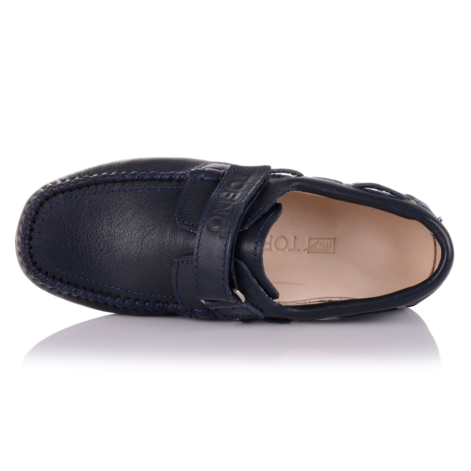 Мягкие и удобные мокасины синего цвета из натуральной кожи, смотрятся очень достойно и дорого. Нога отлично фиксируется липучкой. Внутренняя кожаная стелька "SOFT EFFECT" с супинатором, мягкой прослойкой в пяточной части поддержит свод стопы и поспособствует здоровому развитию мышц, а твердый задник обеспечивают физиологически правильное положение ножки. Анатомическая износостойкая подошва из термокаучука очень мягкая и амортизирует, обеспечивая комфортную походку и хорошее сцепление с твердой поверхностью. Обувь такого качества и дизайна приковывает взгляды!