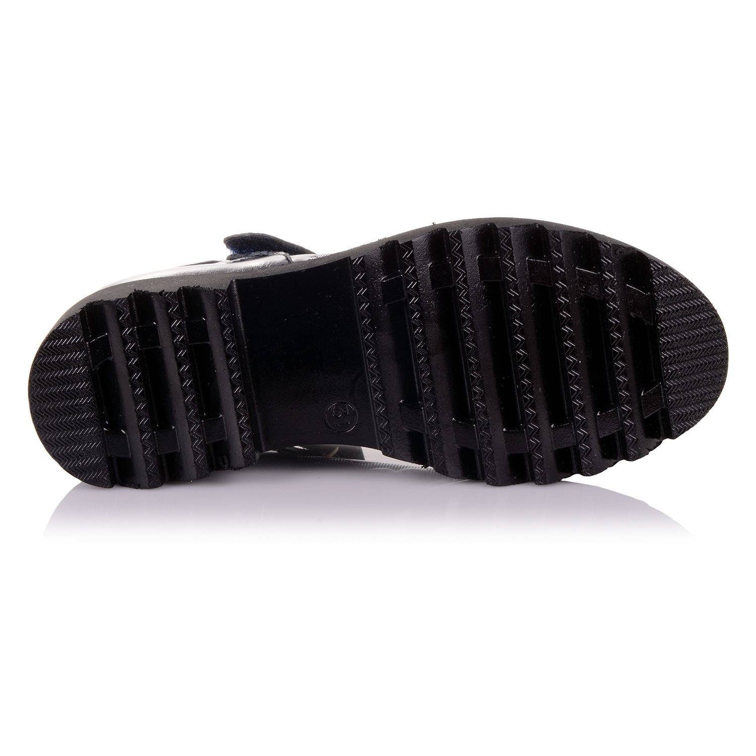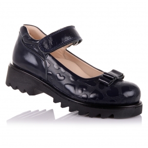Супер-стильные ортопедические туфли турецкой фирмы Цезара для девочки темно-синего цвета с лазерным принтом. Внутренняя и внешняя часть изделия выполнена из натуральной кожи. Удобная фиксация на липучку позволяет подобрать туфли на ногу разной полноты и высоты свода. Дышащая стелька с супинатором и твердый задник обеспечивают физиологически правильное положение ножки. Ребристая подошва, износостойкая из термокаучука, очень мягкая и при ходьбе амортизирует. Одевая такую пару обуви, Ваш ребенок будет чувствовать себя комфортно и привлекать восторженные взгляды окружающих.