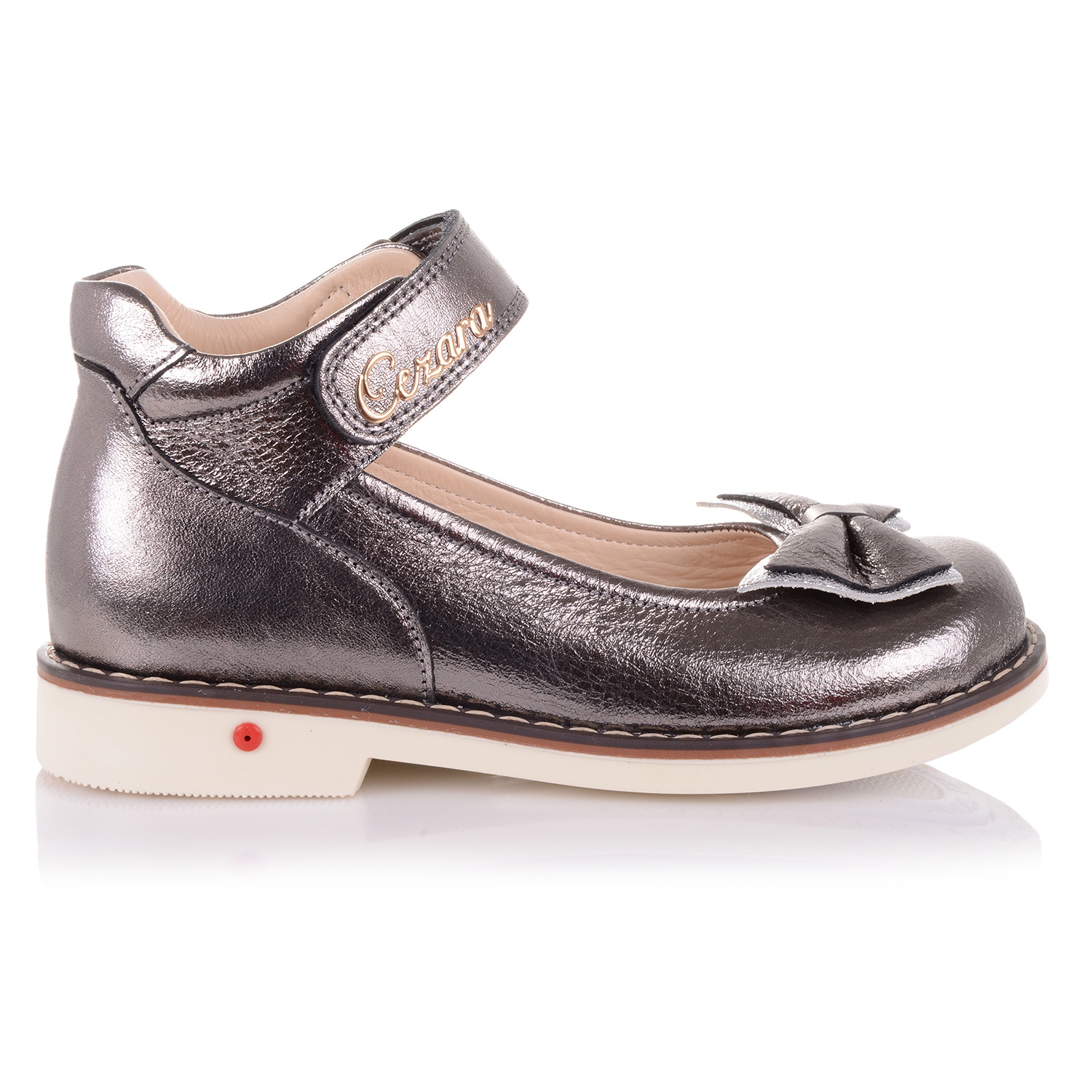 Шикарные ортопедические туфли из натуральной кожи бронзового цвета, станут идеальным дополнением к образу вашей модницы! Внутренняя часть выполнена в бежевой коже, внешняя часть- из натуральной лаковой кожи. Удобная фиксация на липучку позволяет подобрать туфли на ногу разной полноты и высоты свода. Каблук Томаса с удлиненным внутренним краем обеспечит правильную постановку ноги. Анатомическая стелька с супинатором поддержит свод стопы и поспособствует здоровому развитию мышц. О фиксации голенища и щиколотки позаботятся укрепленные берцы и жесткий задник. А хрупкие суставы будут защищены от чрезмерных нагрузок благодаря амортизационной вставке. Одевая такую пару обуви, Ваш ребенок будет чувствовать себя комфортно и эксклюзивно. Соответствие размера: большемерят (возьмите на размер меньше).