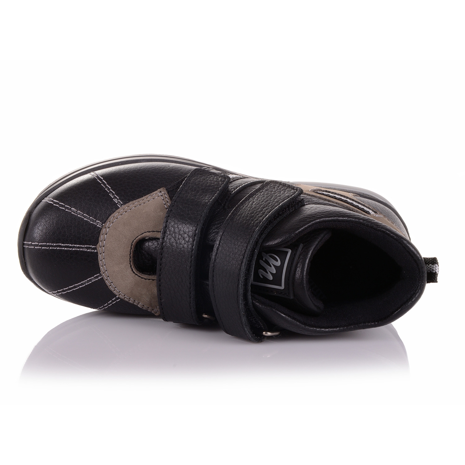 Стильные ботинки фирмы Minimen. Снаружи обувь выполнена из натуральной кожи черного цвета, внутри теплый флис. Фиксируется эта модель с помощью двух липучек. Анатомическая стелька с супинатором поддержит свод стопы и поспособствует здоровому развитию мышц. О фиксации голенища и щиколотки позаботятся укрепленные берцы и жесткий задник. А хрупкие суставы будут защищены от чрезмерных нагрузок благодаря амортизации термопластичной подошвы. В такой обуви класса премиум +, ребенок будет чувствовать себя эксклюзивно!