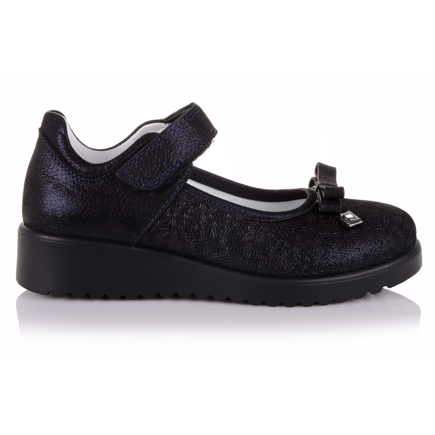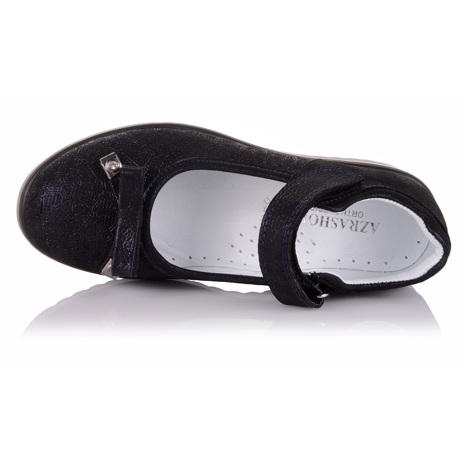 Стильная новинка- ортопедические туфли на девочку из эксклюзивного темно-синего нубука. Внутренняя мягкая кожаная стелька "SOFT EFFECT" с супинатором и твердый задник обеспечивают физиологически правильное положение ноги, а удобная фиксация на липучку позволит выбрать обувь на ногу разной полноты и высоты свода. Подошва, износостойкая из термокаучука. Эти туфли станут неотьемлемой частью гардероба вашего ребенка, а трендовое сочетание матового верха обуви с широкой подошвой создаст самый стильный образ!
