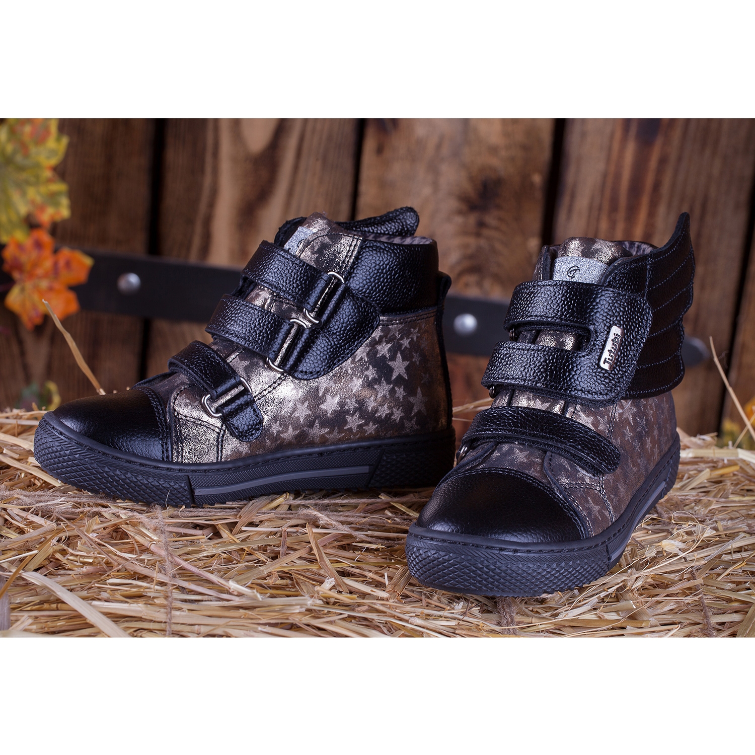 Шикарные демисезонные ботинки для незабываемого образа Вашей модницы. Ботинки выполнены из натуральной цветной кожи. Небольшое крыло придает образу оригинальности. Фиксация двумя липучками. Анатомическая стелька с супинатором поддержит свод стопы и поспособствует здоровому развитию мышц, а твердый задник обеспечивают физиологически правильное положение ножки. В такой обуви класса премиум +, ребенок будет чувствовать себя эксклюзивно!