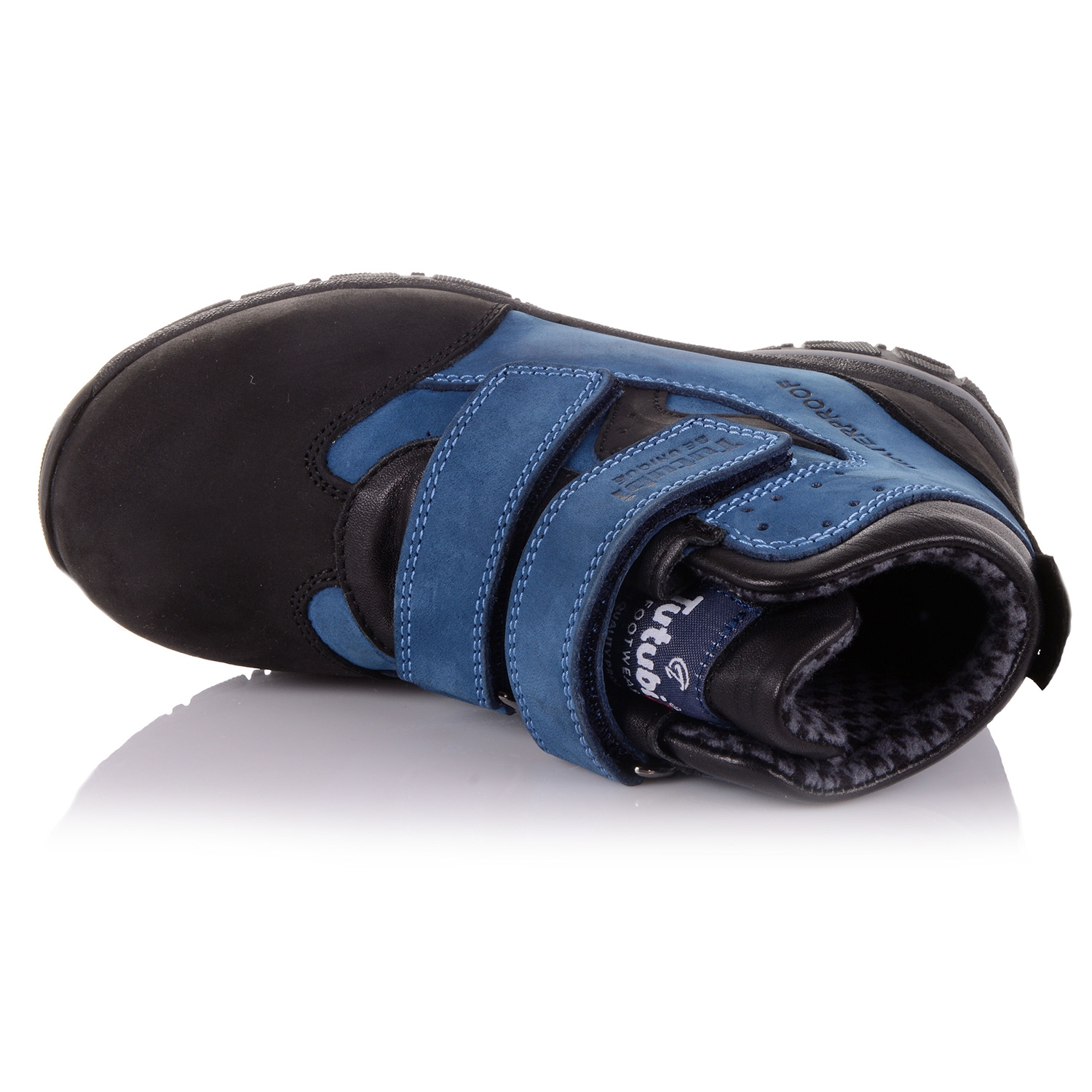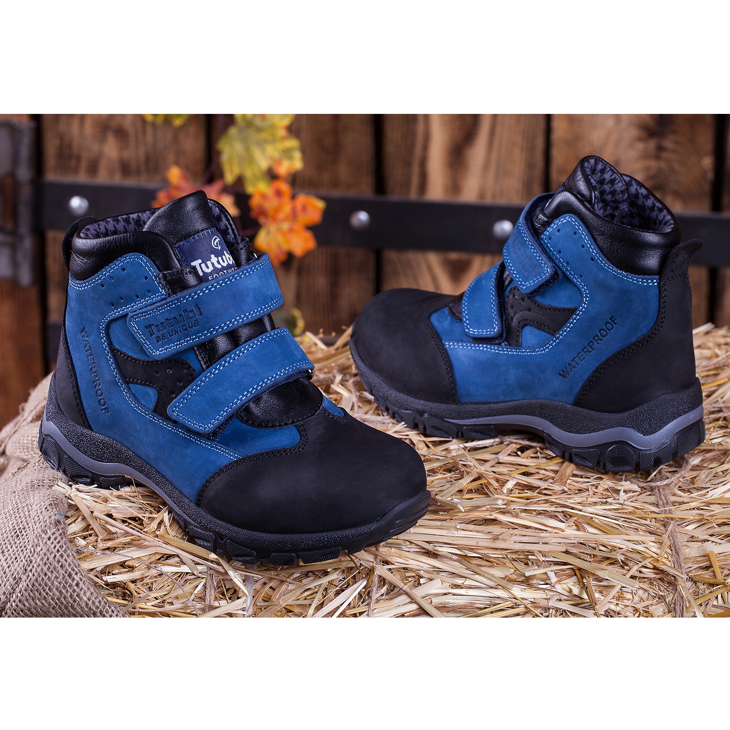 Стильные и удобные демисезонные ботинки- идеальны для города! Снаружи ботинки выполнены из натурального нубука синего цвета, внутри- плотный флис. Удобная фиксация на две липучки позволяет подобрать обувь на ногу разной полноты и высоты свода. Анатомическая стелька с супинатором поддержит свод стопы и поспособствует здоровому развитию мышц. О фиксации голенища и щиколотки позаботятся укрепленные берцы и жесткий задник. А хрупкие суставы будут защищены от чрезмерных нагрузок благодаря амортизационной вставке и высокому протектору на подошве. Не отказывайте своему сокровищу носить правильную ортопедическую обувь класса премиум+.