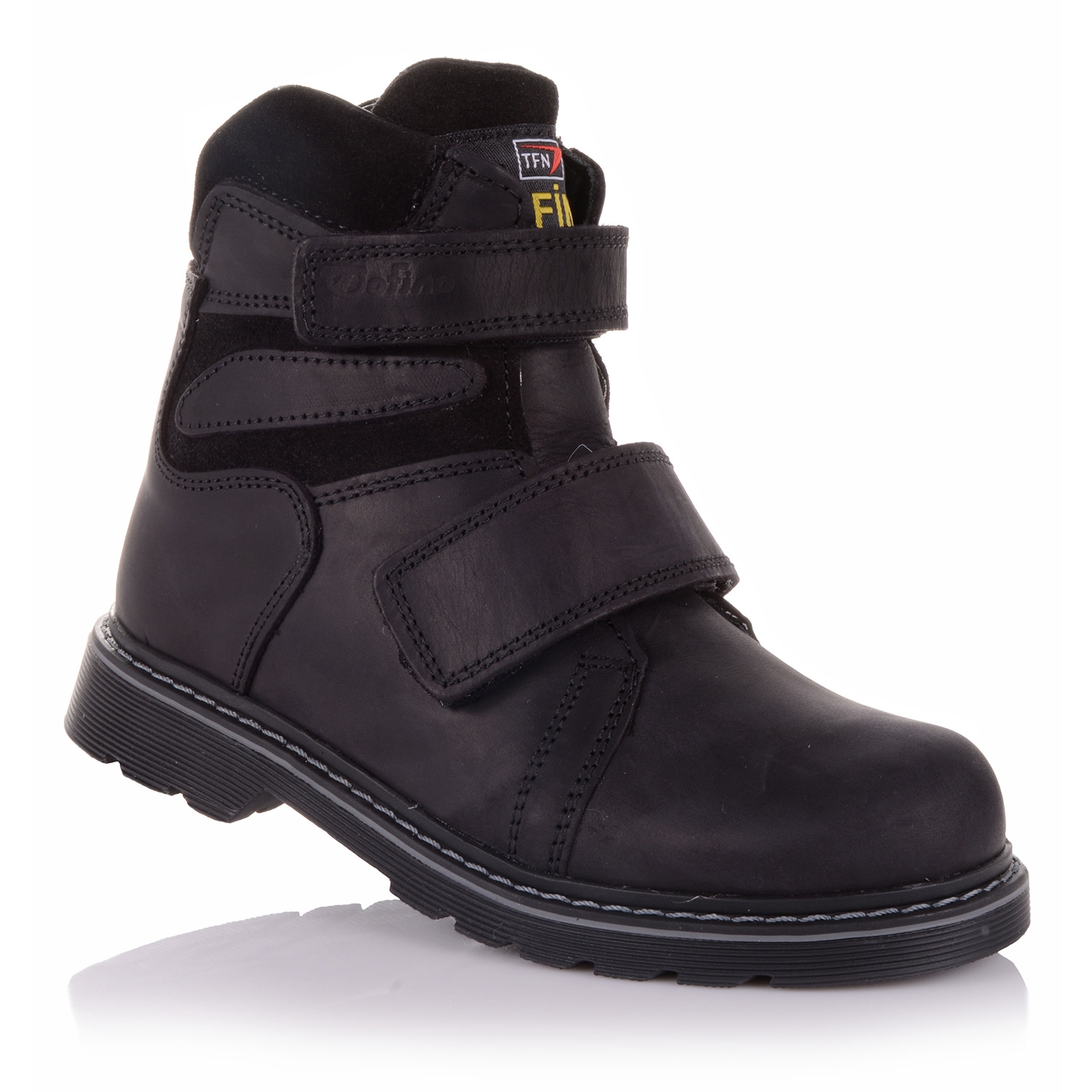 Шикарные ортопедические демисезонные ботинки- идеальны для города! Снаружи ботинки выполнены из натурального жирного нубука насыщенного черного цвета, внутри- плотный флис. Удобная фиксация на две липучки позволяет подобрать обувь на ногу разной полноты и высоты свода. Каблук Томаса с удлиненным внутренним краем обеспечит правильную постановку ноги. Анатомическая стелька с супинатором поддержит свод стопы и поспособствует здоровому развитию мышц. О фиксации голенища и щиколотки позаботятся укрепленные берцы и жесткий задник. А хрупкие суставы будут защищены от чрезмерных нагрузок благодаря амортизационной вставке. Не отказывайте своему сокровищу носить правильную ортопедическую обувь класса премиум+.