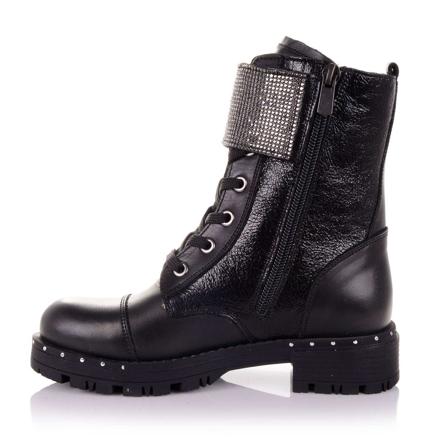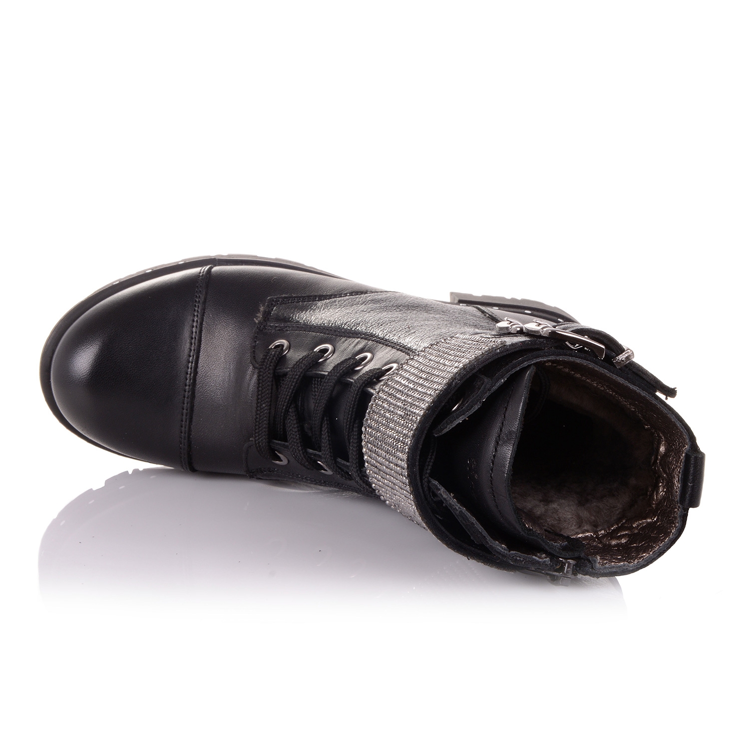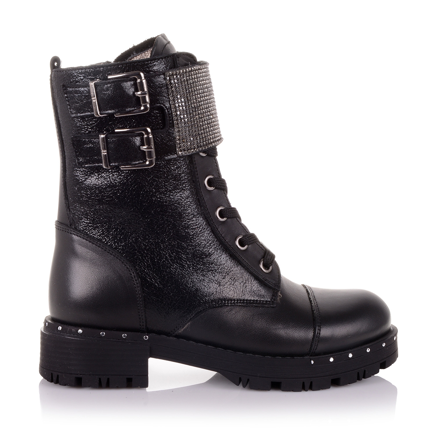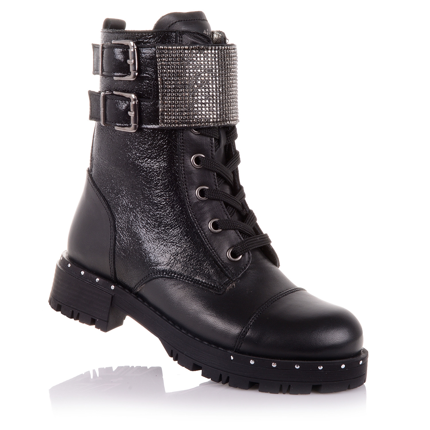 Супер-стильные и удобные зимние ботинки- идеальны для города! Снаружи ботинки выполнены из натуральной кожи черного цвета, украшены лентой из блестящих камней и двумя пряжками. Такая модель отлично дополнит образ маленькой модницы и не останется без внимания окружающих. Надевать такие ботинки- секундное дело, ведь помимо шнурка, в них есть змейка сбоку. Внутри - натуральный мех. Анатомическая стелька с супинатором поддержит свод стопы и поспособствует здоровому развитию мышц. О фиксации голенища и щиколотки позаботятся укрепленные берцы и жесткий задник. А хрупкие суставы будут защищены от чрезмерных нагрузок благодаря амортизационной подошве на высоком протекторе. Не отказывайте своему сокровищу носить обувь класса премиум+.