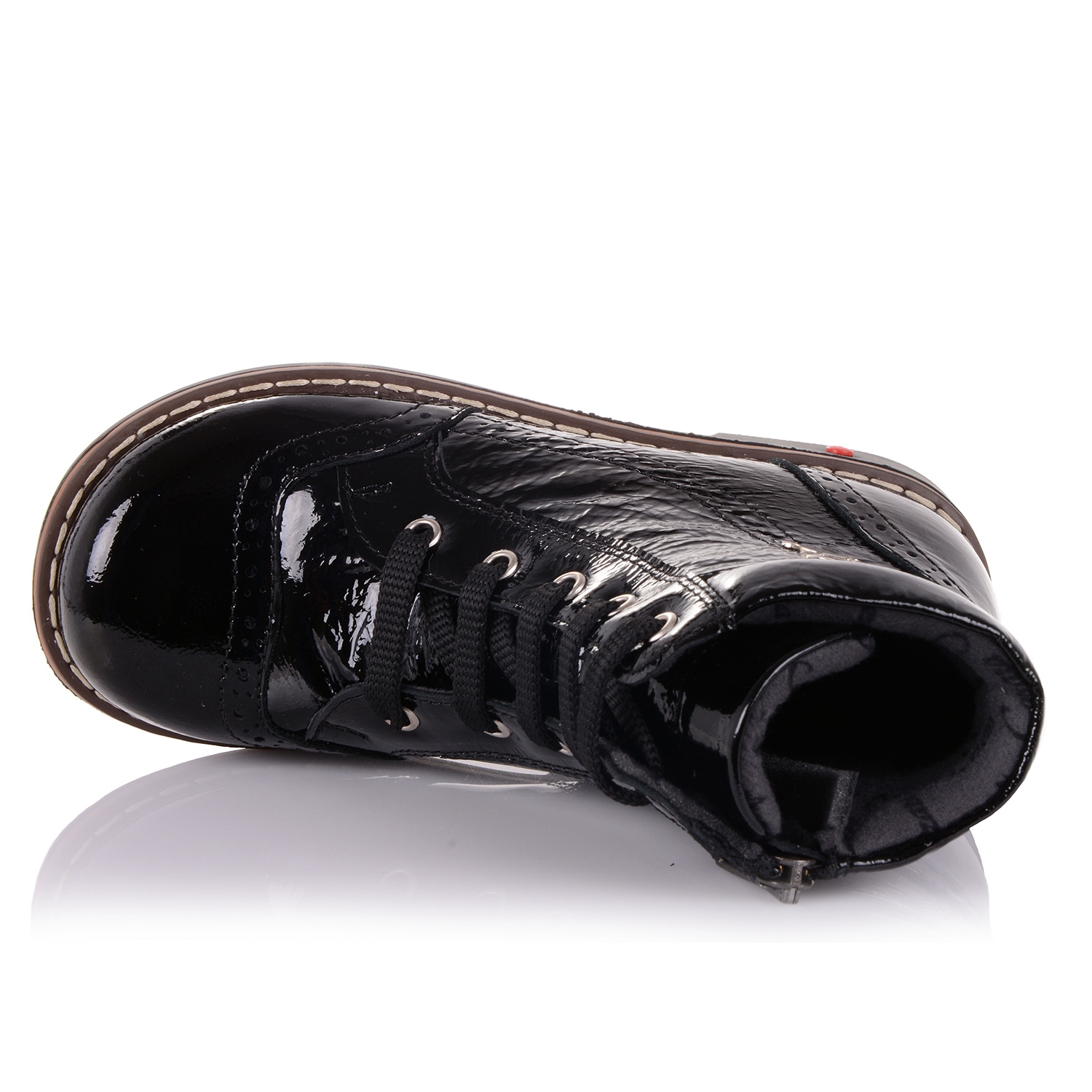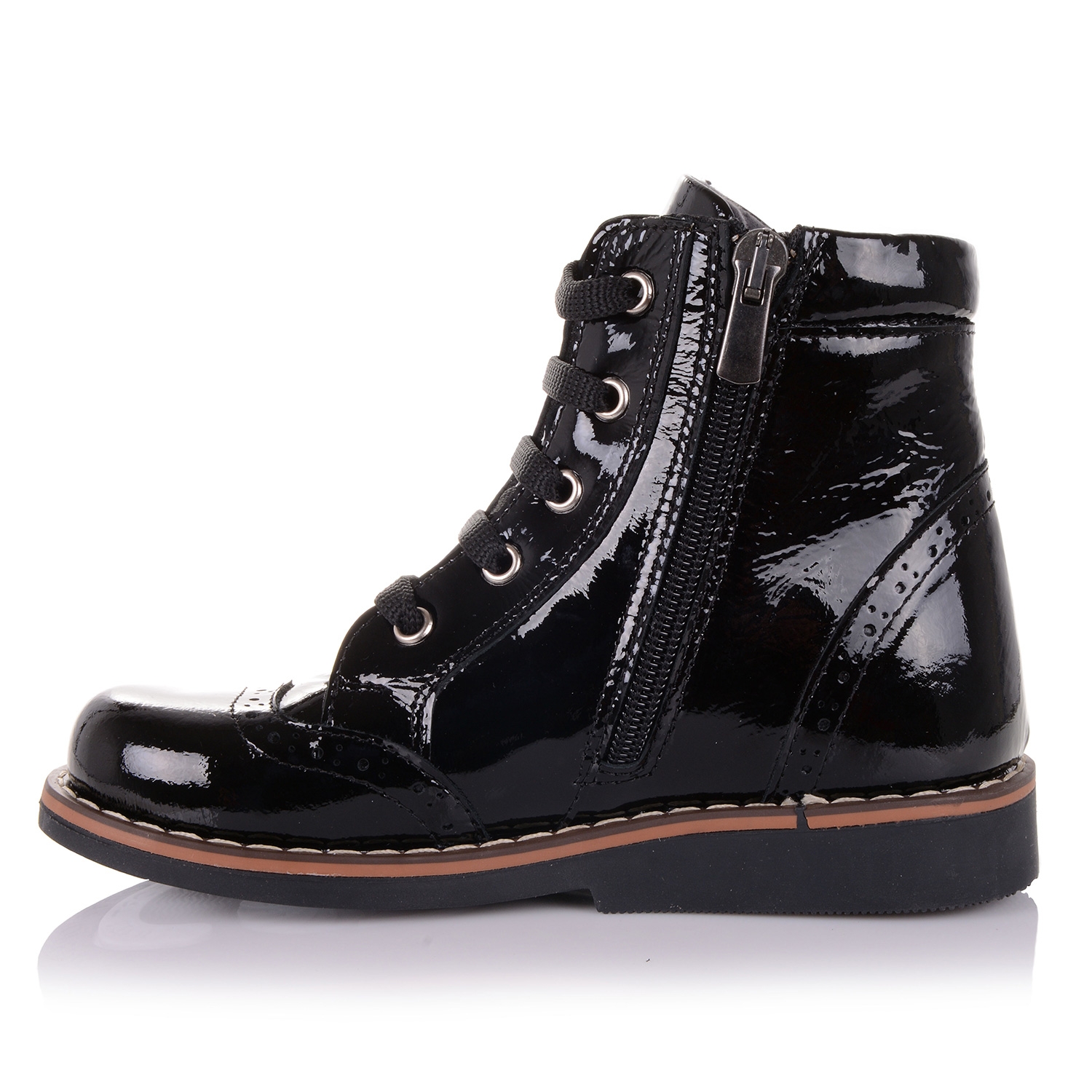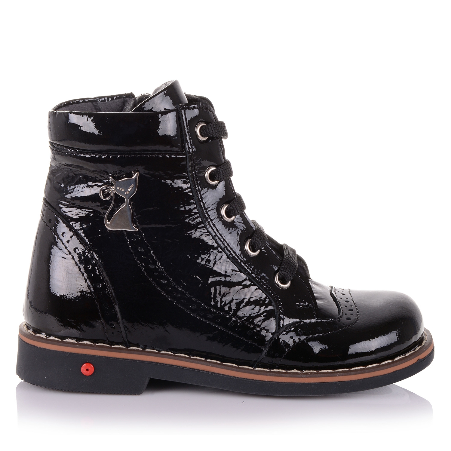 Шикарные и удобные ортопедические демисезонные ботинки на девочку- идеальны для города! Снаружи ботинки выполнены из натуральной лаковой кожи черного цвета, внутри- плотный флис. Надевать такие ботинки - секундное дело, ведь помимо шнурков в них есть ещё и молния сбоку. Каблук Томаса с удлиненным внутренним краем обеспечит правильную постановку ноги. Анатомическая стелька с супинатором поддержит свод стопы и поспособствует здоровому развитию мышц. О фиксации голенища и щиколотки позаботятся укрепленные берцы и жесткий задник. А хрупкие суставы будут защищены от чрезмерных нагрузок благодаря амортизационной вставке. Не отказывайте своему сокровищу носить правильную ортопедическую обувь класса премиум+.