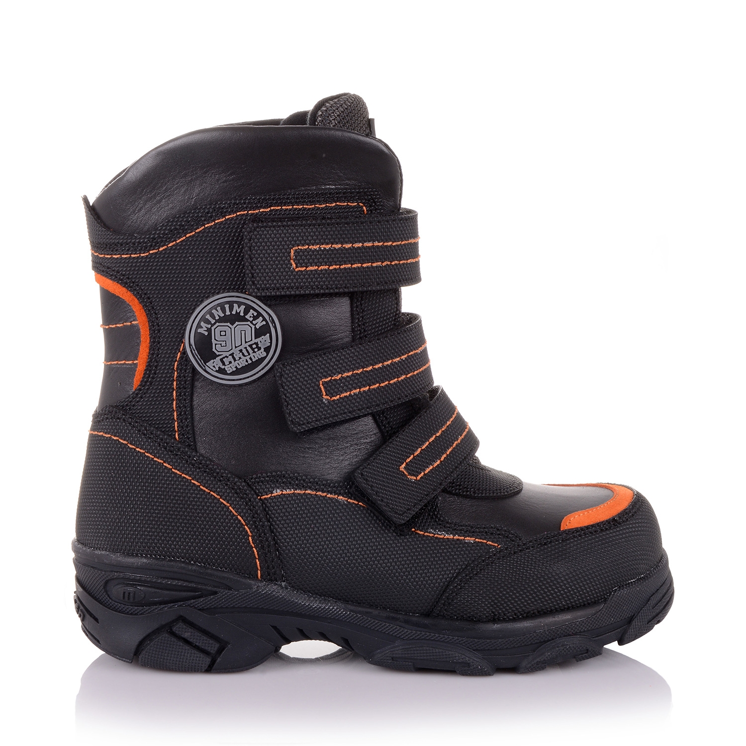Зимние ботинки фирмы Minimen из натуральной кожи со вставками из текстиля, защитят от влаги и согреют в холодную погоду ножки ребенка! Подошва из термопласта, дополнительно прошита, разработана специально для холодного времени года, не скользит по мокрой поверхности за счет специальной ребристой подошвы. Закрытый язык с усиленной губкой и фиксация тремя липучками значительно понижает вероятность попадания воды внутрь. Носок - прорезиненный. Внутри: анатомическая стелька, утеплитель- натуральный мех.Усилены носок и пятка для поддержания стопы в правильном положении (препятствует развитию плоскостопия). При выборе ортопедической и ортопрофилактической обуви очень важна уверенность в качестве, ведь Ваш ребенок достоин самого лучшего. Рекомендовано по всем показателям ортопедами!