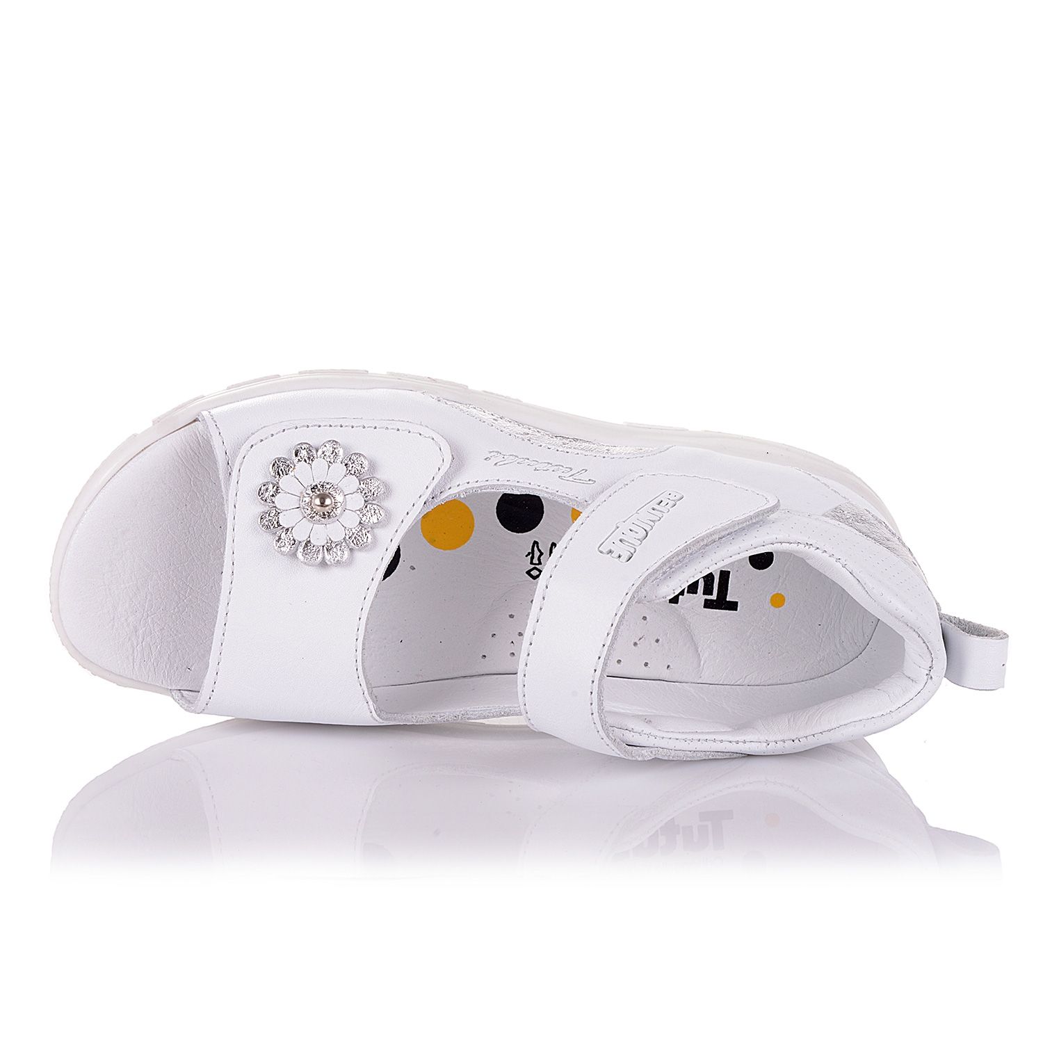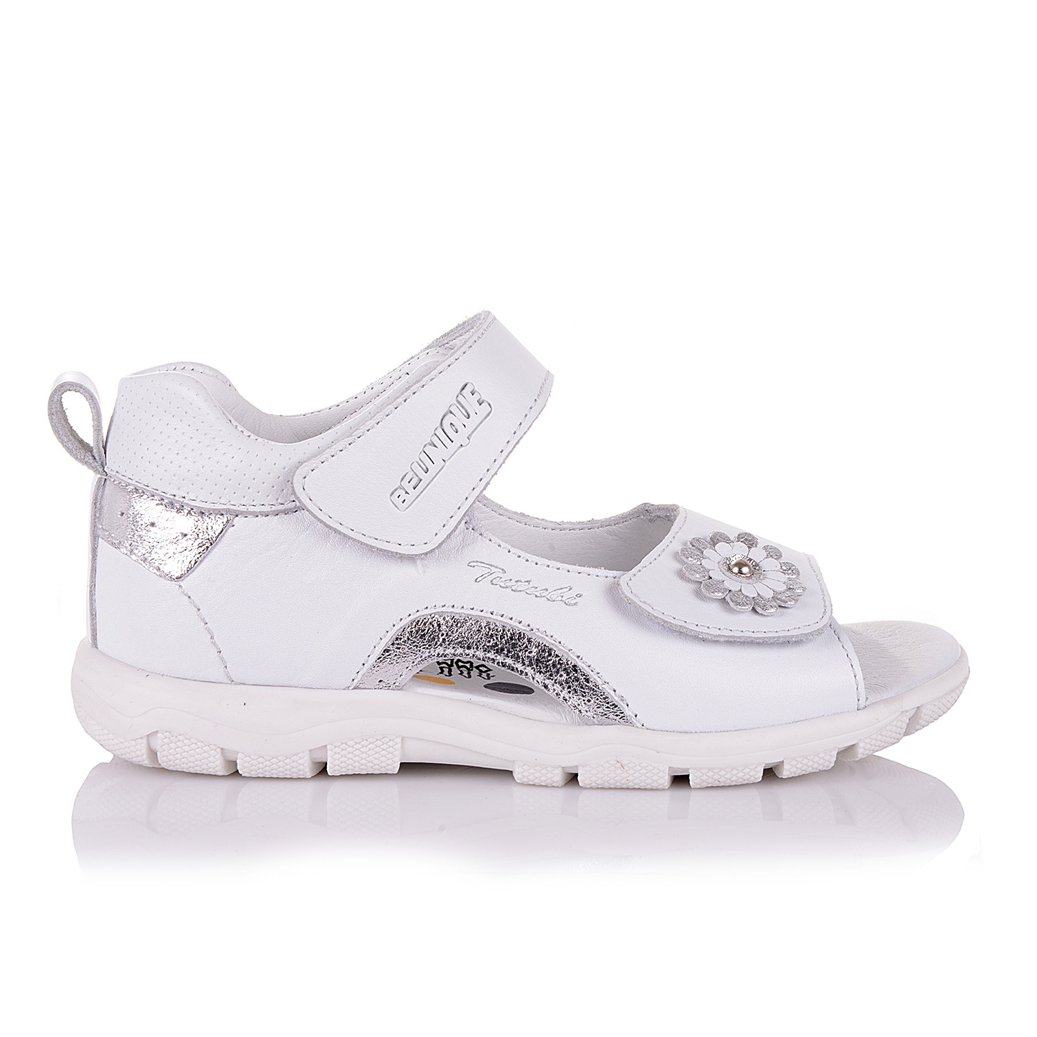 Супер-модные босоножки белого цвета- ультрамодная модель этого сезона. Внутренняя и внешняя часть изделия выполнена из натуральной кожи. Удобная фиксация на две липучки позволяет подобрать обувь на ногу разной полноты и высоты свода. Стелька с супинатором и твердый задник обеспечивают физиологически правильное положение ножки. Легкая анатомическая износостойкая подошва из термокаучука с антишоковыми вставками, которые снимают ударную нагрузку на пяточную кость. Такая модель идеально подойдет для ежедневных прогулок.
