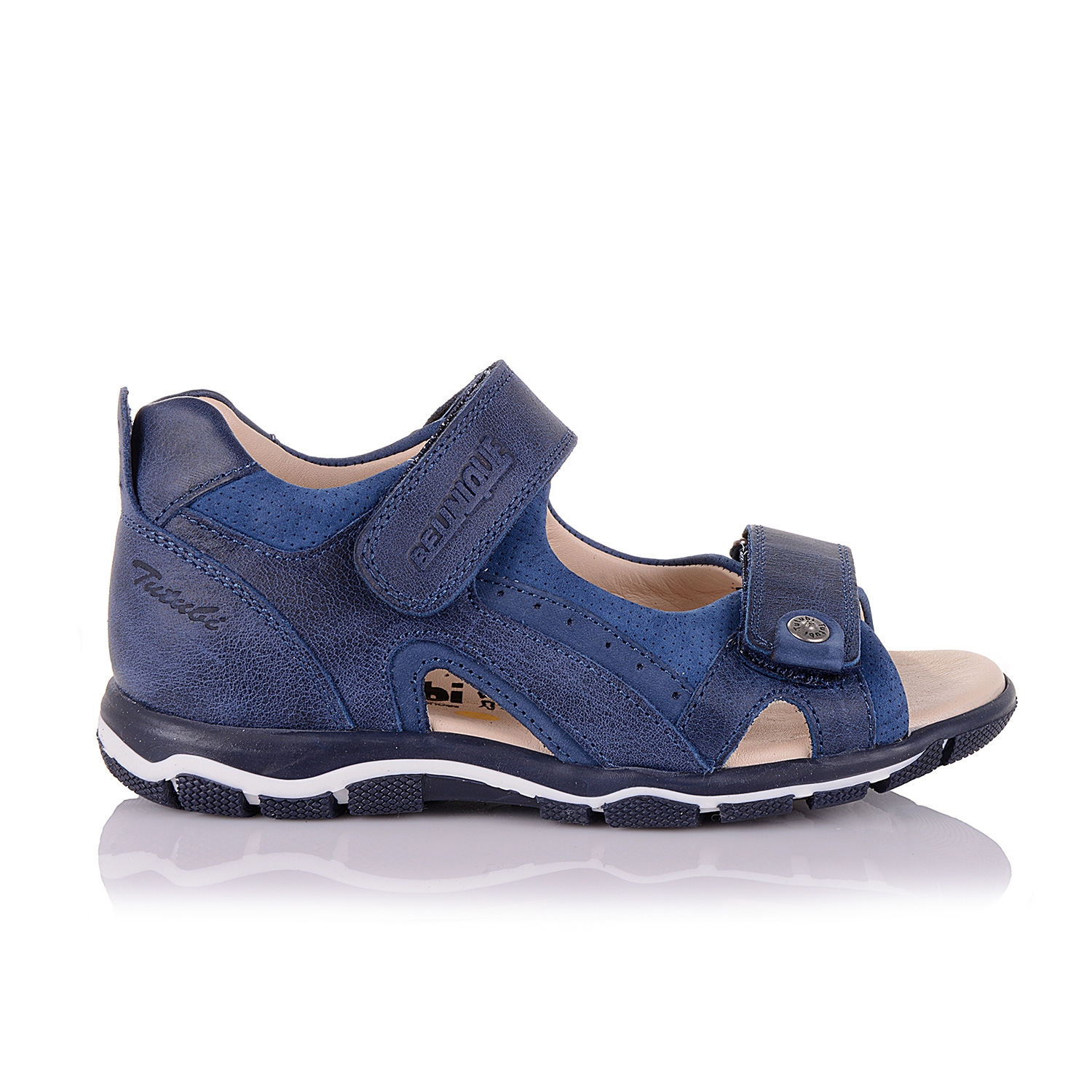 Супер-модные босоножки синего цвета из натуральной кожи и нубука- ультрамодная модель этого сезона. Внутренняя изделия выполнена из натуральной кожи. Удобная фиксация на две липучки позволяет подобрать обувь на ногу разной полноты и высоты свода. Стелька с супинатором и твердый задник обеспечивают физиологически правильное положение ножки. Легкая анатомическая износостойкая подошва из термокаучука с антишоковыми вставками, которые снимают ударную нагрузку на пяточную кость. Такая модель идеально подойдет для ежедневных прогулок