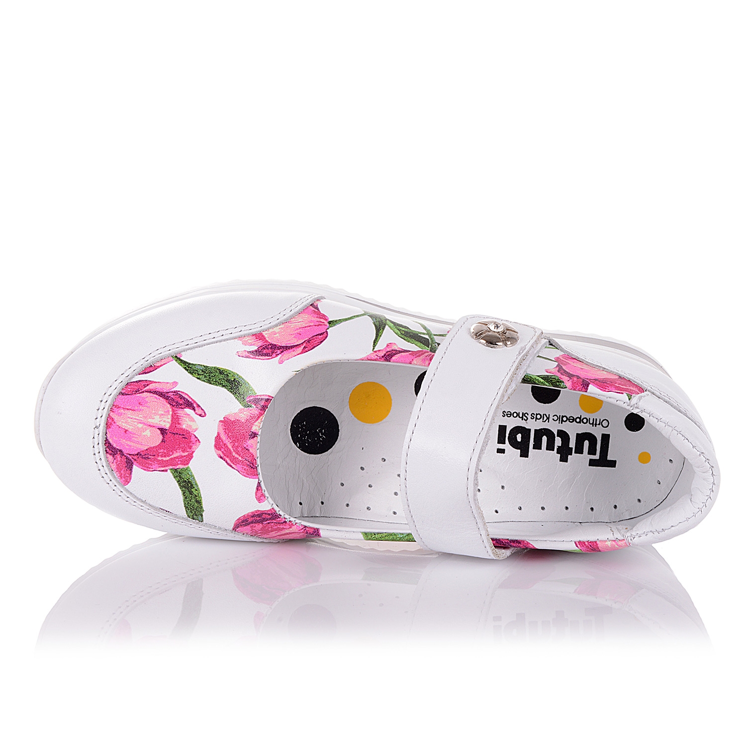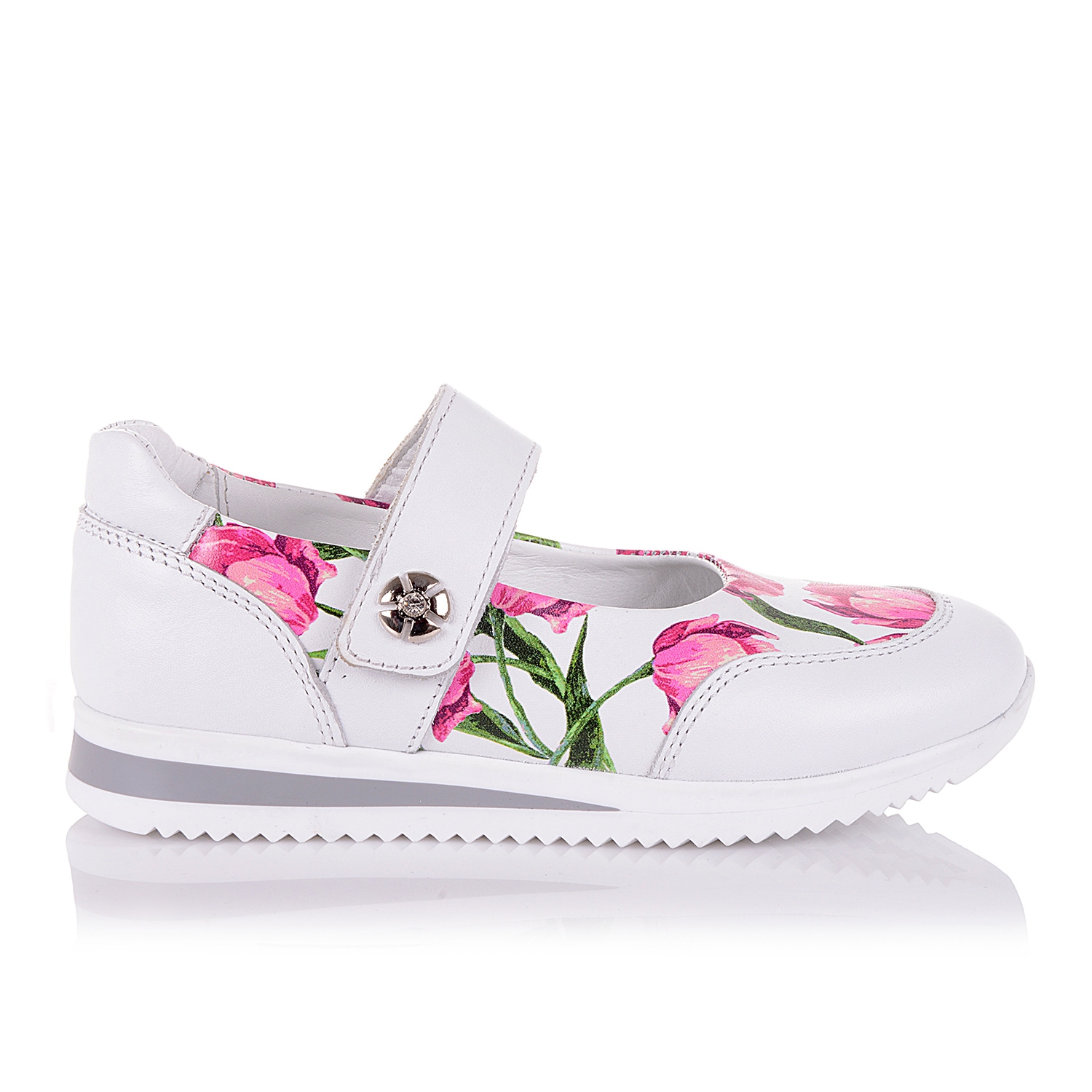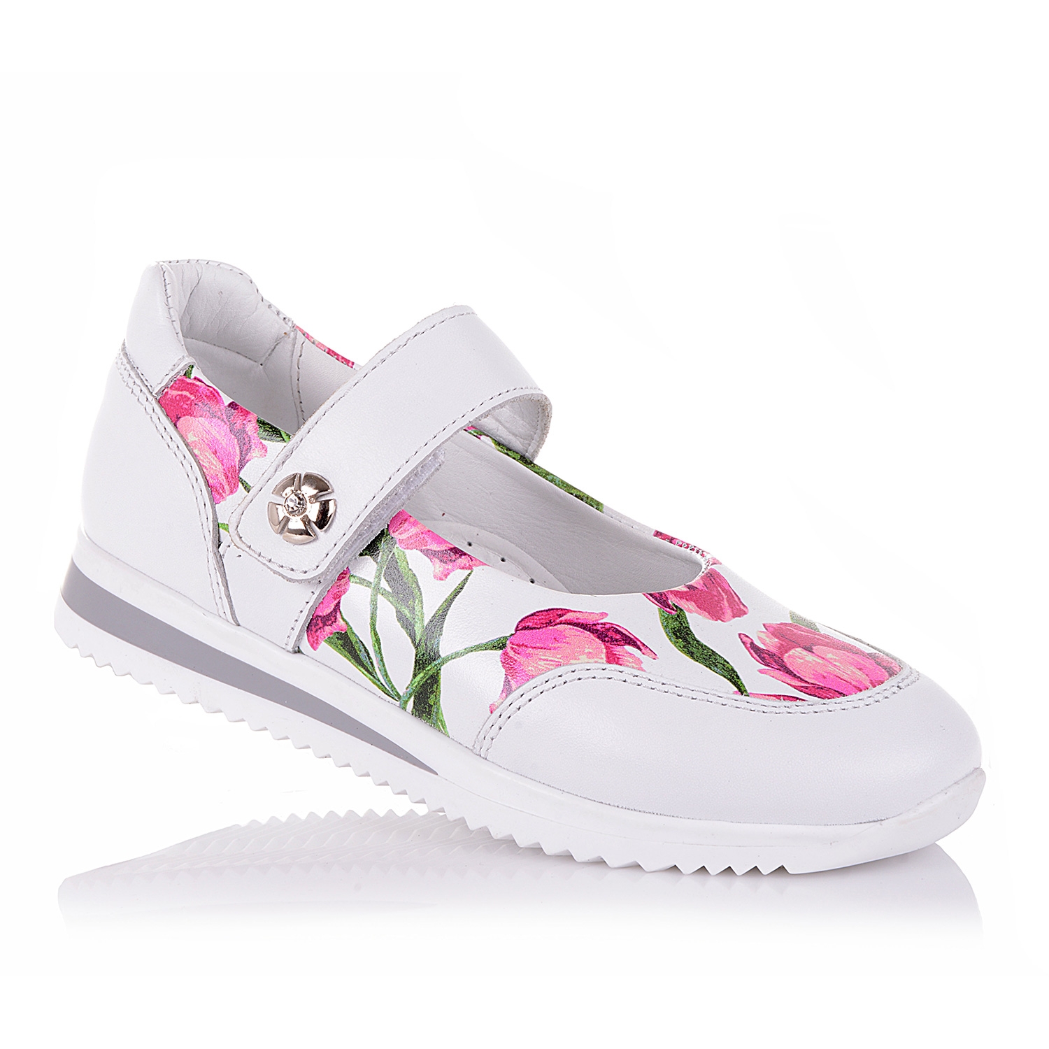 Очень стильные туфли на девочку из натуральной белой кожи с цветочным принтом станут идеальным дополнением к образу вашей модницы! Внутренняя и внешняя часть- из натуральной кожи. Удобная фиксация на липучку позволяет подобрать туфли на ногу разной полноты и высоты свода. Анатомическая стелька с твердым супинатором поддержит свод стопы и способствует здоровому развитию мышц. О фиксации голенища и щиколотки позаботится жесткий задник. Подошва, износостойкая из термокаучука. Эти туфли станут неотьемлемой частью гардероба вашего ребенка