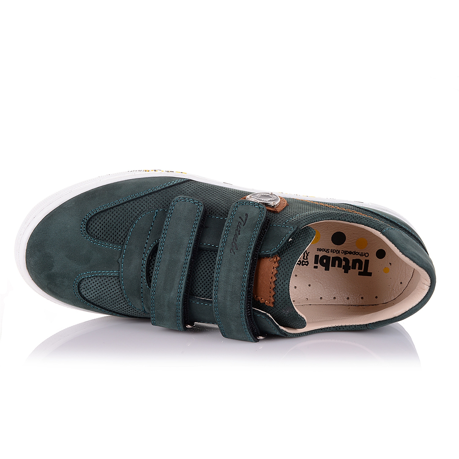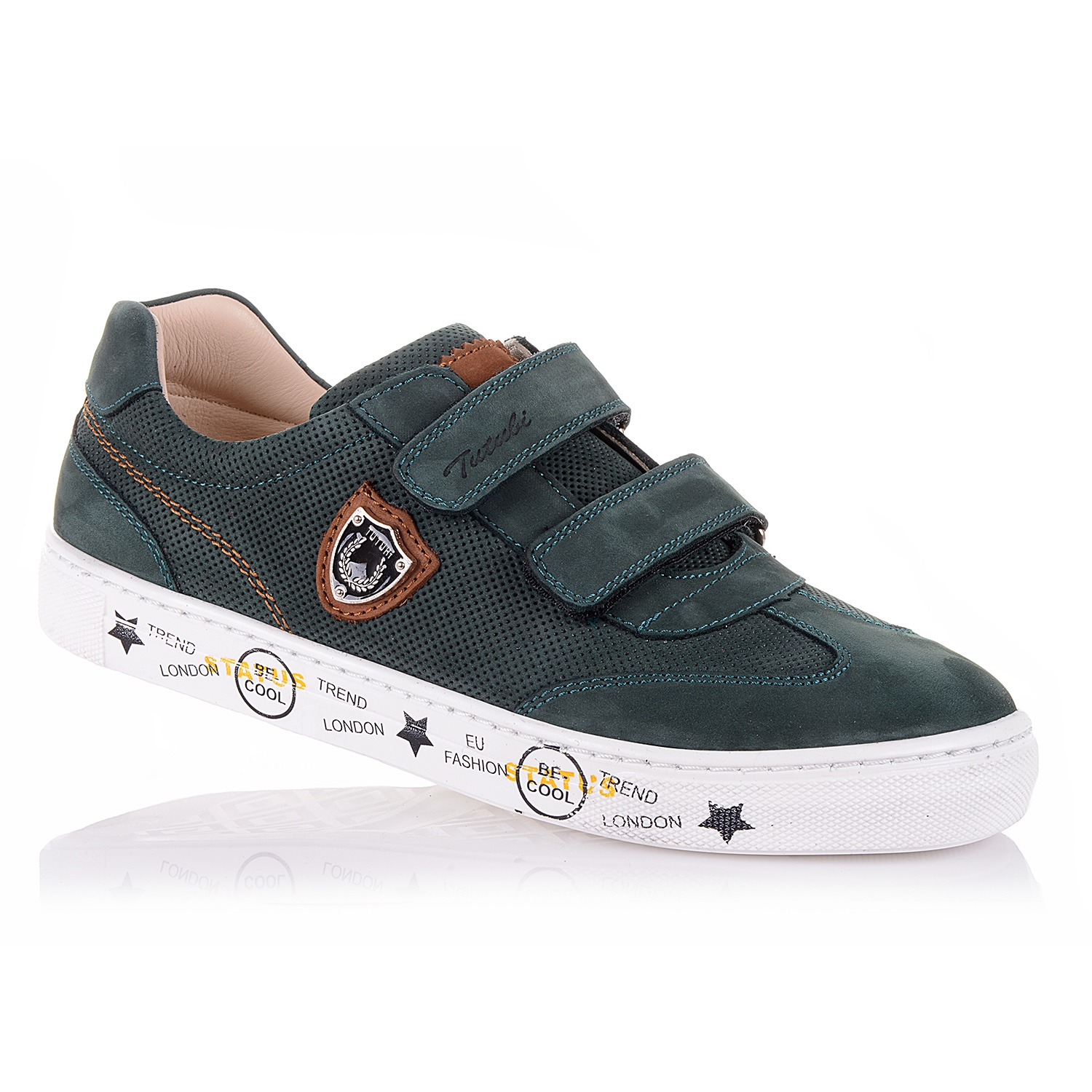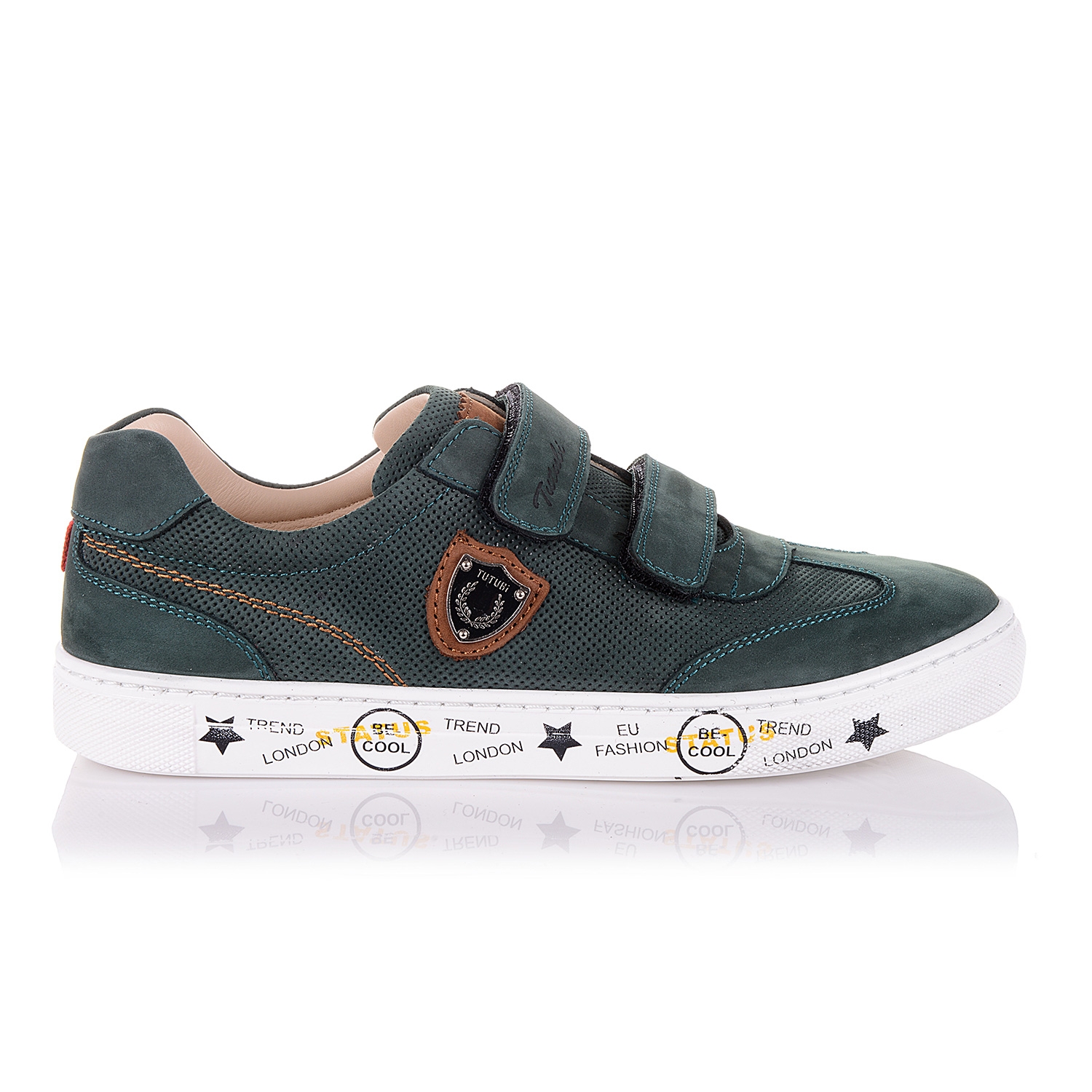 Стильные кроссовки из натурального нубука зеленого цвета. Внутренняя мягкая кожаная стелька с супинатором и твердый задник обеспечивают физиологически правильное положение ноги, а удобная фиксация на две липучки позволит выбрать обувь на ногу разной полноты и высоты свода. Подошва, износостойкая из термокаучука- мягкая, при ходьбе амортизирует. Шикарный выбор как для спорта, так и для ежедневных прогулок. Ваш ребенок останется доволен.