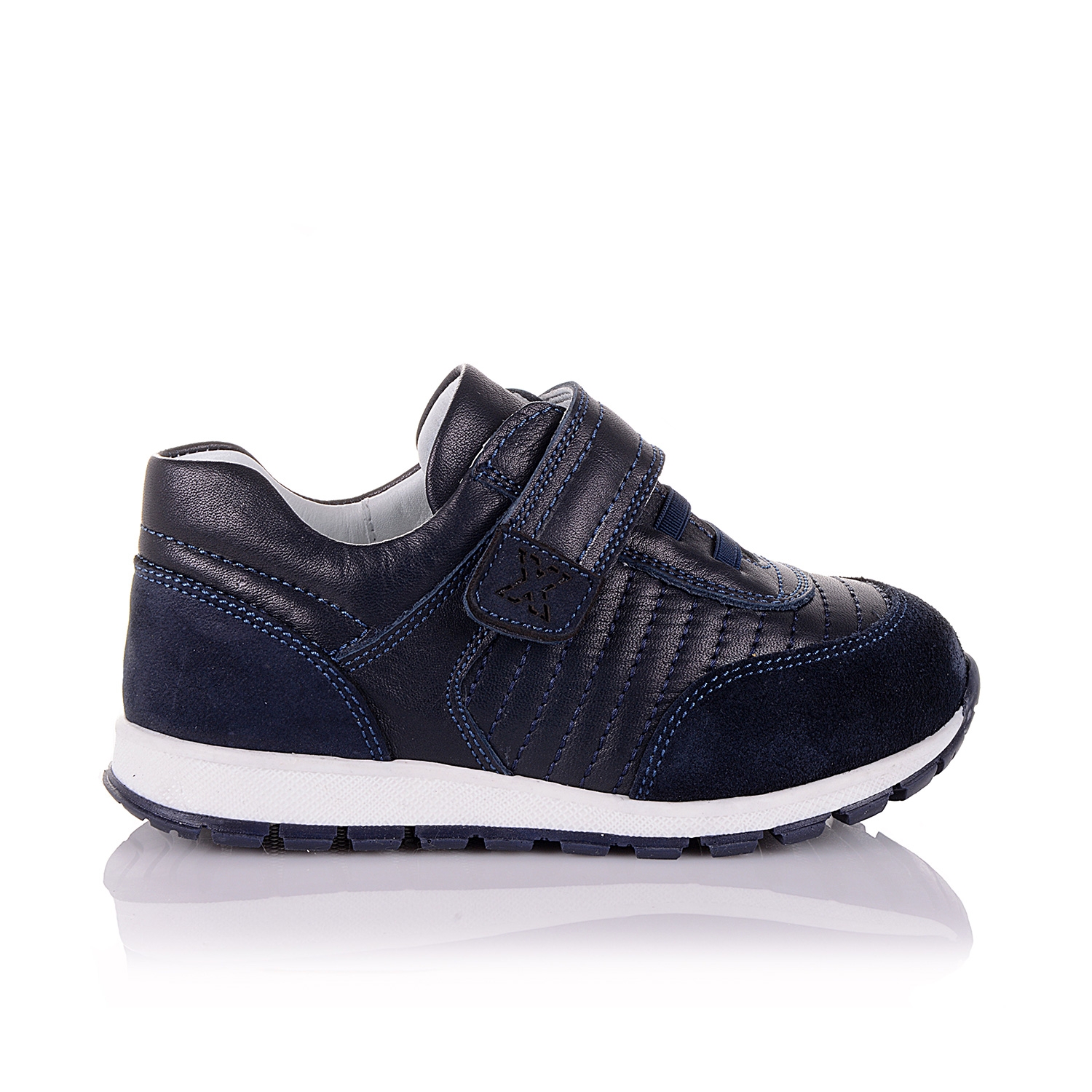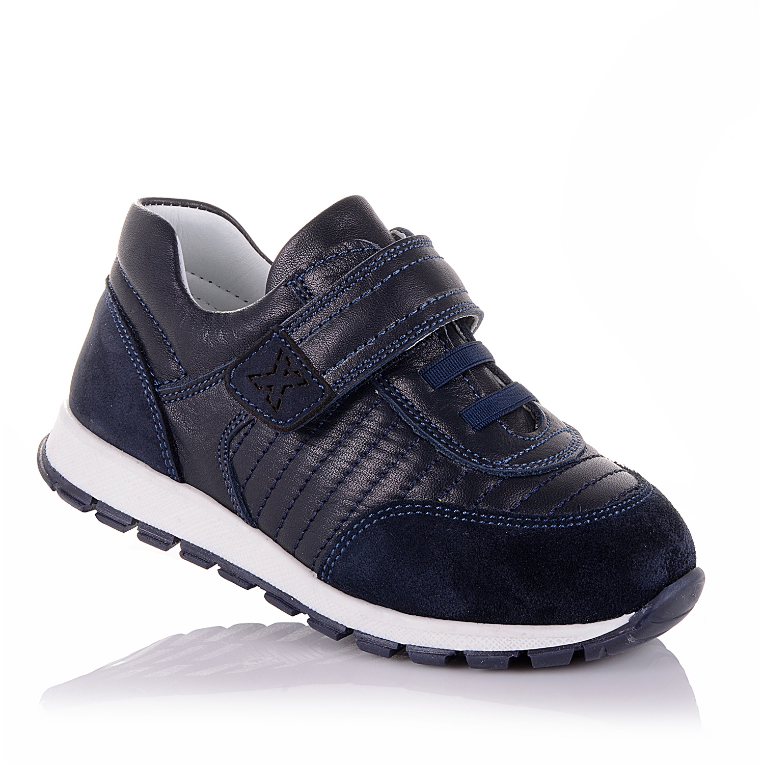 Очень мягкие и удобные кроссовки темно-синего цвета из натуральной кожи, подойдут практически под любой гардероб. Внутренняя мягкая кожаная стелька с супинатором и твердый задник обеспечивают физиологически правильное положение ножки, а удобная фиксация на липучку + шнуровка позволит выбрать обувь на ногу разной полноты и высоты свода. Подошва износостойкая из термокаучука, обеспечивает амортизацию, комфортную походку и хорошее сцепление с твердой поверхностью. Обувь такого качества и дизайна приковывает взгляды!