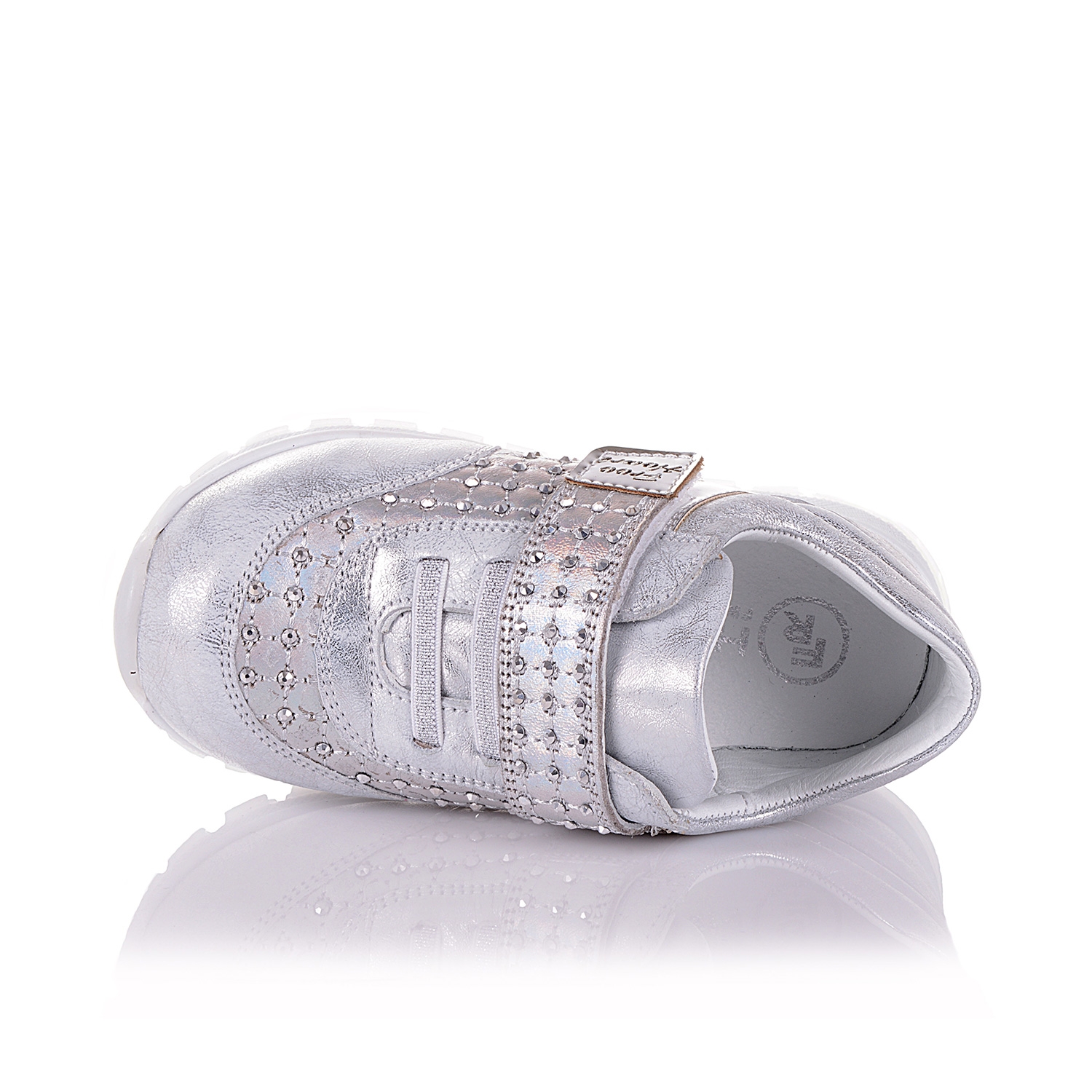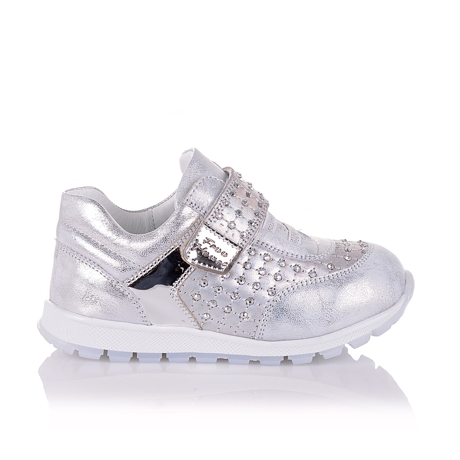 Очень мягкие и удобные кроссовки серебристого цвета из натуральной кожи, подойдут практически под любой гардероб. Внутренняя мягкая кожаная стелька с супинатором и твердый задник обеспечивают физиологически правильное положение ножки, а удобная фиксация на липучку + шнуровка позволит выбрать обувь на ногу разной полноты и высоты свода. Подошва износостойкая из термокаучука, обеспечивает амортизацию, комфортную походку и хорошее сцепление с твердой поверхностью. Обувь такого качества и дизайна приковывает взгляды!