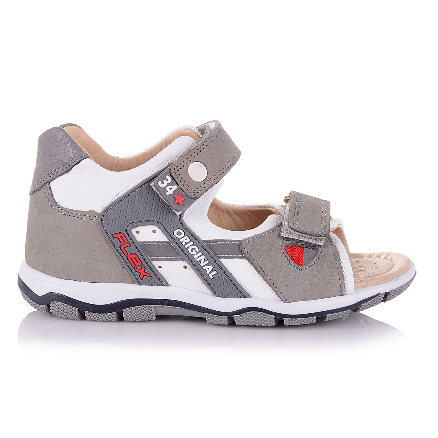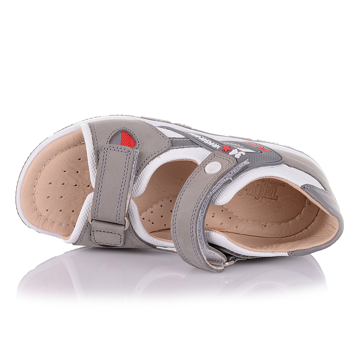 Супер-модные босоножки серого цвета- ультрамодная модель этого сезона. Внутренняя и внешняя часть изделия выполнена в натуральной коже в сочетании с нубуком. Удобная фиксация на две липучки позволяет подобрать обувь на ногу разной полноты и высоты свода. Стелька с супинатором и твердый задник обеспечивают физиологически правильное положение ножки. Легкая анатомическая износостойкая подошва из термокаучука с антишоковыми вставками, которые снимают ударную нагрузку на пяточную кость. Такая модель идеально подойдет для ежедневных прогулок.