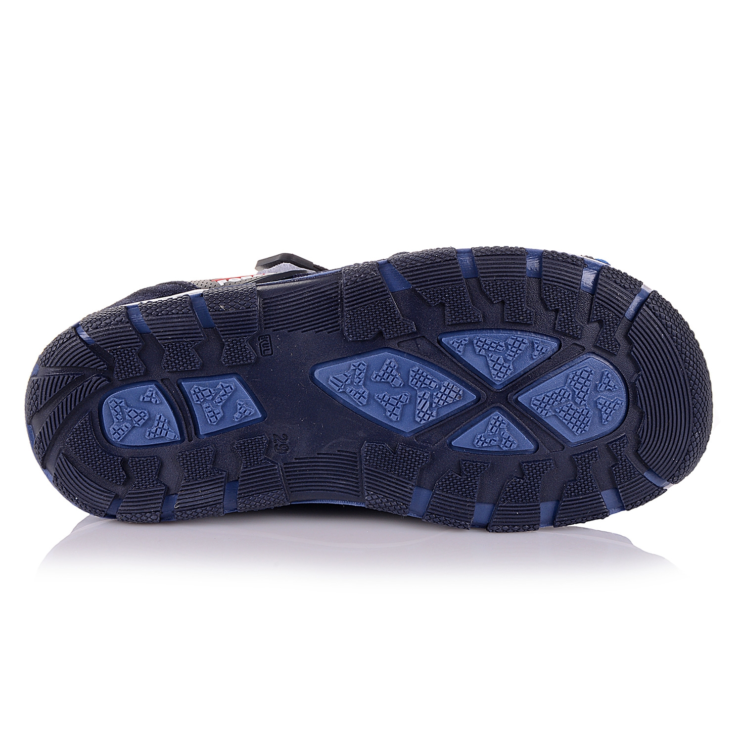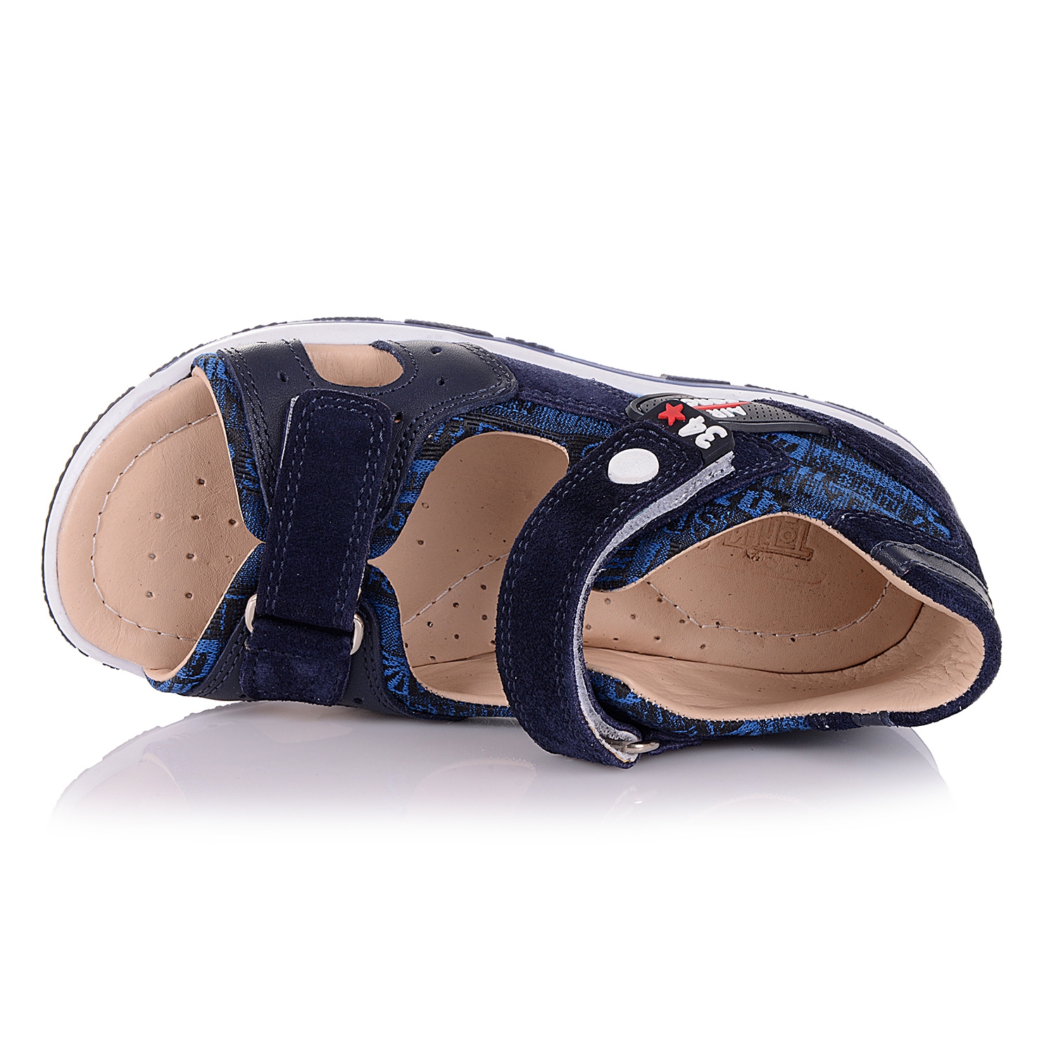 Супер-модные босоножки темно-синего цвета- ультрамодная модель этого сезона. Удобная фиксация на две липучки позволяет подобрать обувь на ногу разной полноты и высоты свода. Стелька с супинатором и твердый задник обеспечивают физиологически правильное положение ножки. Легкая анатомическая износостойкая подошва из термокаучука с антишоковыми вставками, которые снимают ударную нагрузку на пяточную кость. Такая модель идеально подойдет для ежедневных прогулок.