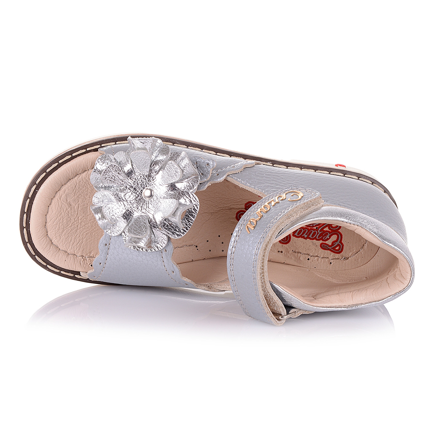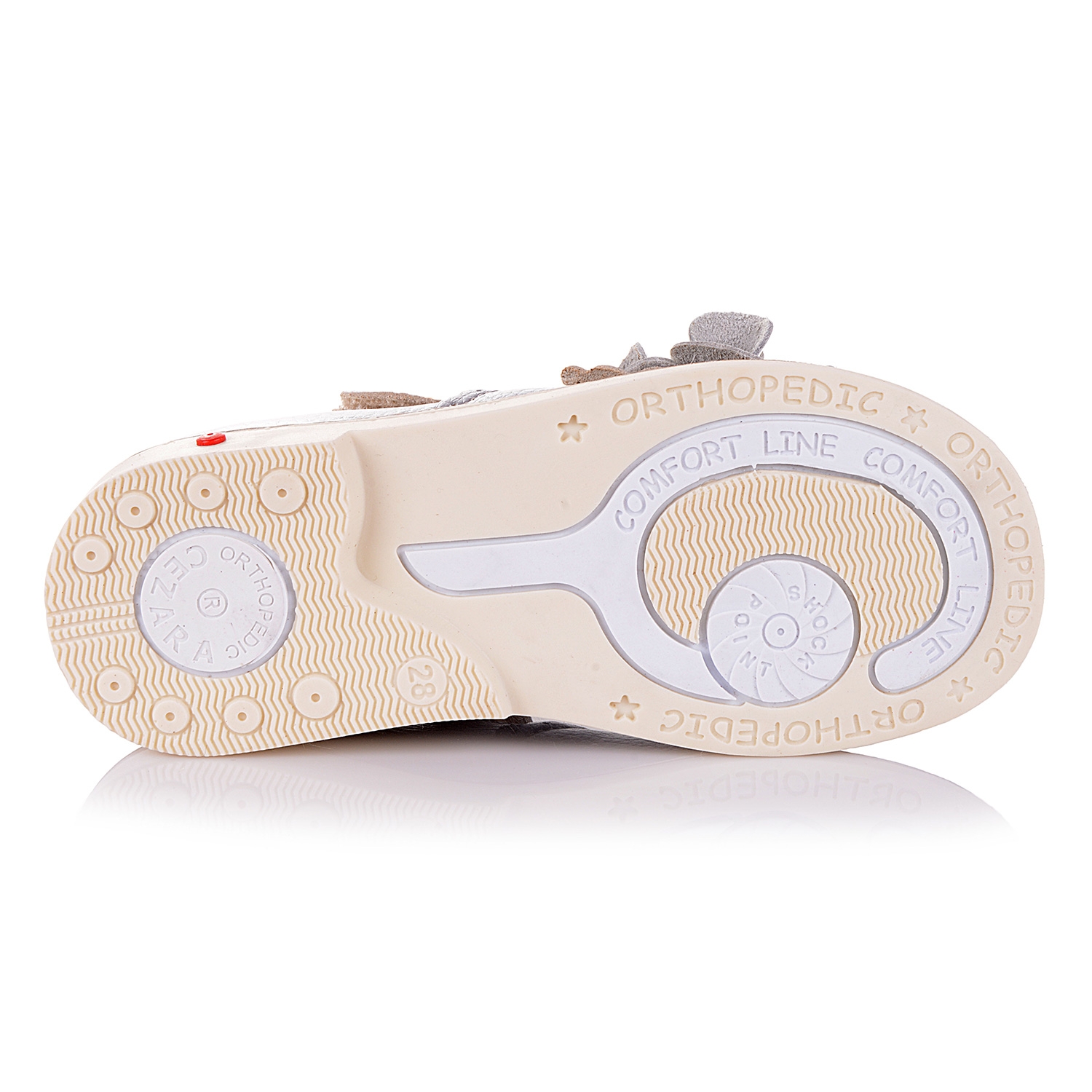 Модная новинка- ортопедические босоножки из натуральной кожи серого цвета. Удобная фиксация двумя липучками позволяет подобрать обувь на ногу разной полноты и высоты свода. Кожаная стелька с супинатором и твердый задник обеспечивают физиологически правильное положение ножки. Подошва, износостойкая из термокаучука, со скошенным каблуком Томаса и антишоковыми вставками, которые снимают ударную нагрузку на пяточную кость. Обувь прочная и износостойкая, ваш ребенок будет чувствовать себя в ней комфортно и уверенно.