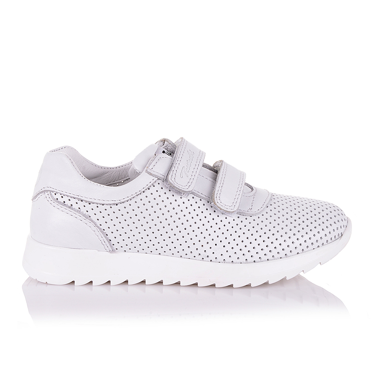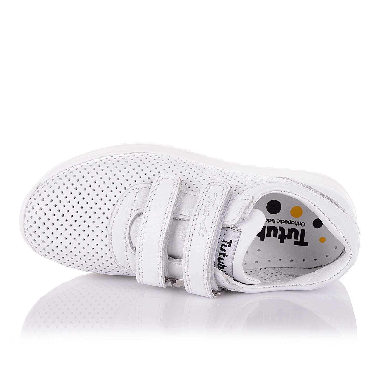 Эффектные перфорированные ортопедические кроссовки выполнены из натуральной кожи белого цвета. Обувь очень красиво и аккуратно смотрится на ножке. Нога любого обьема отлично фиксируется двумя липучками. Анатомическая стелька с твердым супинатором и мягкой прослойкой в пяточной части, поддержит свод стопы и поспособствует здоровому развитию мышц. О фиксации щиколотки позаботится жесткий задник. Подошва, ребристая износостойкая из термокаучука- мягкая, при ходьбе амортизирует. Не отказывайте своему сокровищу в удовольствии носить правильную ортопедическую обувь класса премиум+.