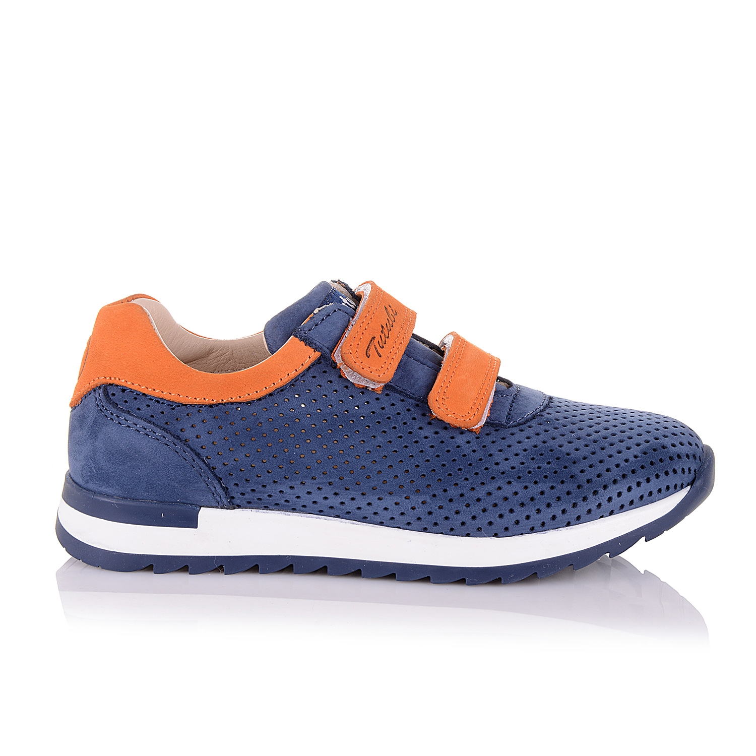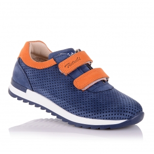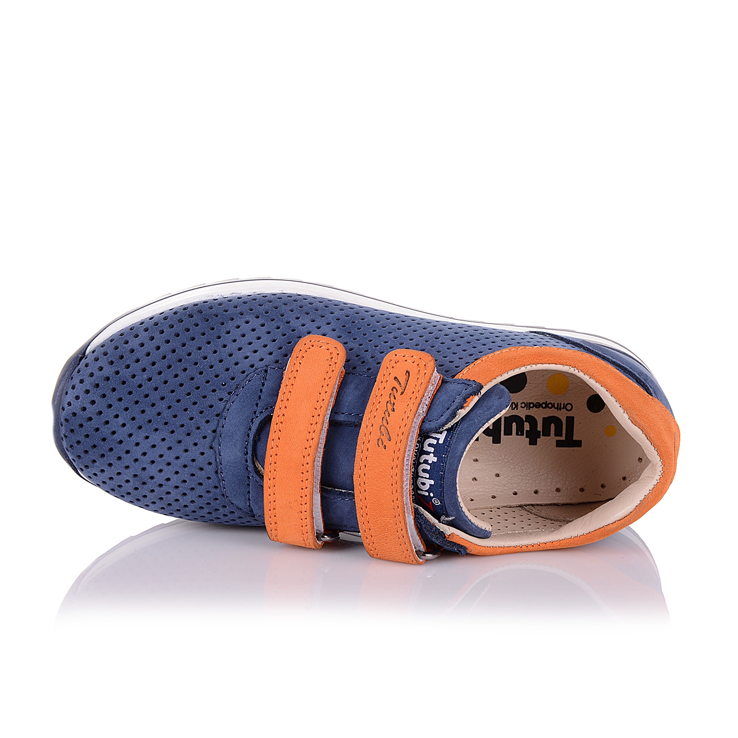 Эффектные ортопедические кроссовки выполнены из натурального нубука синего цвета с перфорацией и оранжевыми липучками. Обувь очень красиво и аккуратно смотрится на ножке. Нога любого обьема отлично фиксируется двумя липучками. Анатомическая стелька с твердым супинатором и мягкой прослойкой в пяточной части, поддержит свод стопы и поспособствует здоровому развитию мышц. О фиксации щиколотки позаботится жесткий задник. Подошва, ребристая износостойкая из термокаучука- мягкая, при ходьбе амортизирует. Не отказывайте своему сокровищу в удовольствии носить правильную ортопедическую обувь класса премиум+.