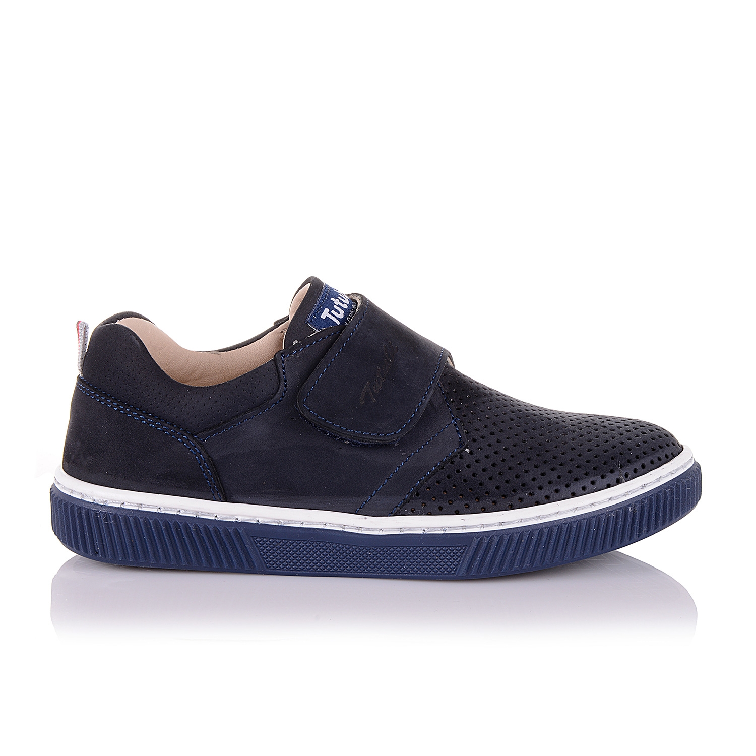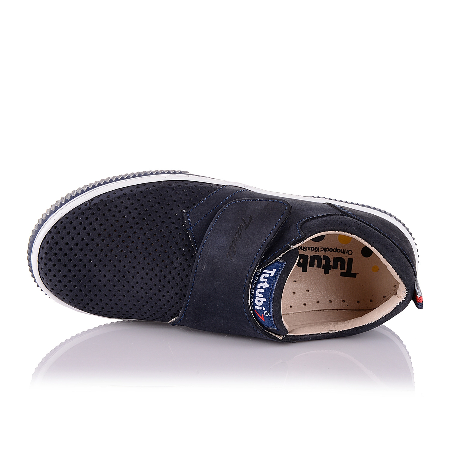 Перфорированные ортопедические мокасины темно-синего цвета из натурального нубука, подойдут практически под любой гардероб на сезон весна-лето. Нога фиксируется липучкой. Внутренняя мягкая кожаная стелька с супинатором и твердый задник обеспечивают физиологически правильное положение ножки. Подошва износостойкая из термокаучука, обеспечивает амортизацию, комфортную походку и хорошее сцепление с твердой поверхностью. Обувь такого качества и дизайна приковывает взгляды!