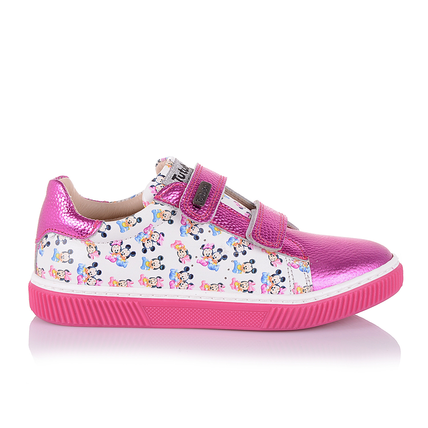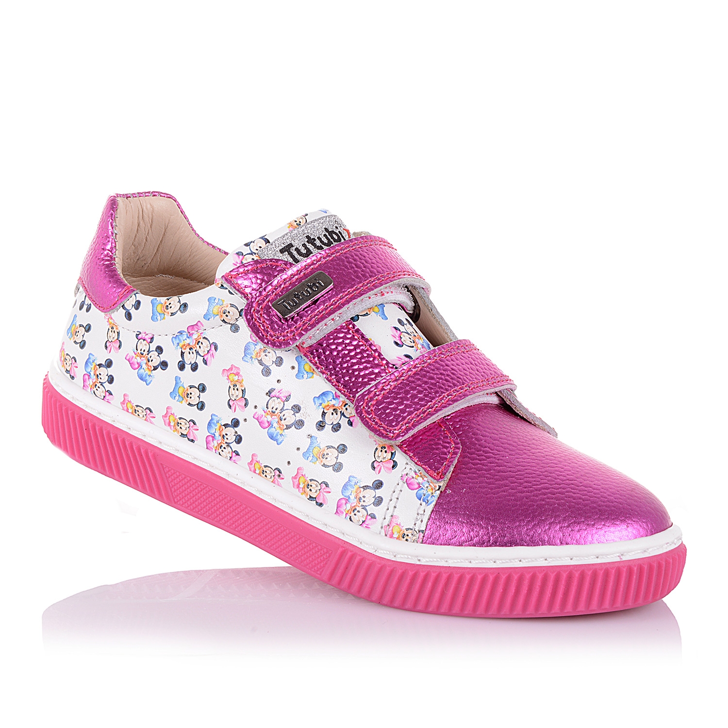 Стильные кроссовки из натуральной кожи розового и белого цвета с Микки и Минни. Внутренняя мягкая кожаная стелька с супинатором и твердый задник обеспечивают физиологически правильное положение ноги, а удобная фиксация на две липучки позволит выбрать обувь на ногу разной полноты и высоты свода. Подошва, износостойкая из термокаучука- мягкая, при ходьбе амортизирует. Шикарный выбор как для спорта, так и для ежедневных прогулок. Ваш ребенок останется доволен.
