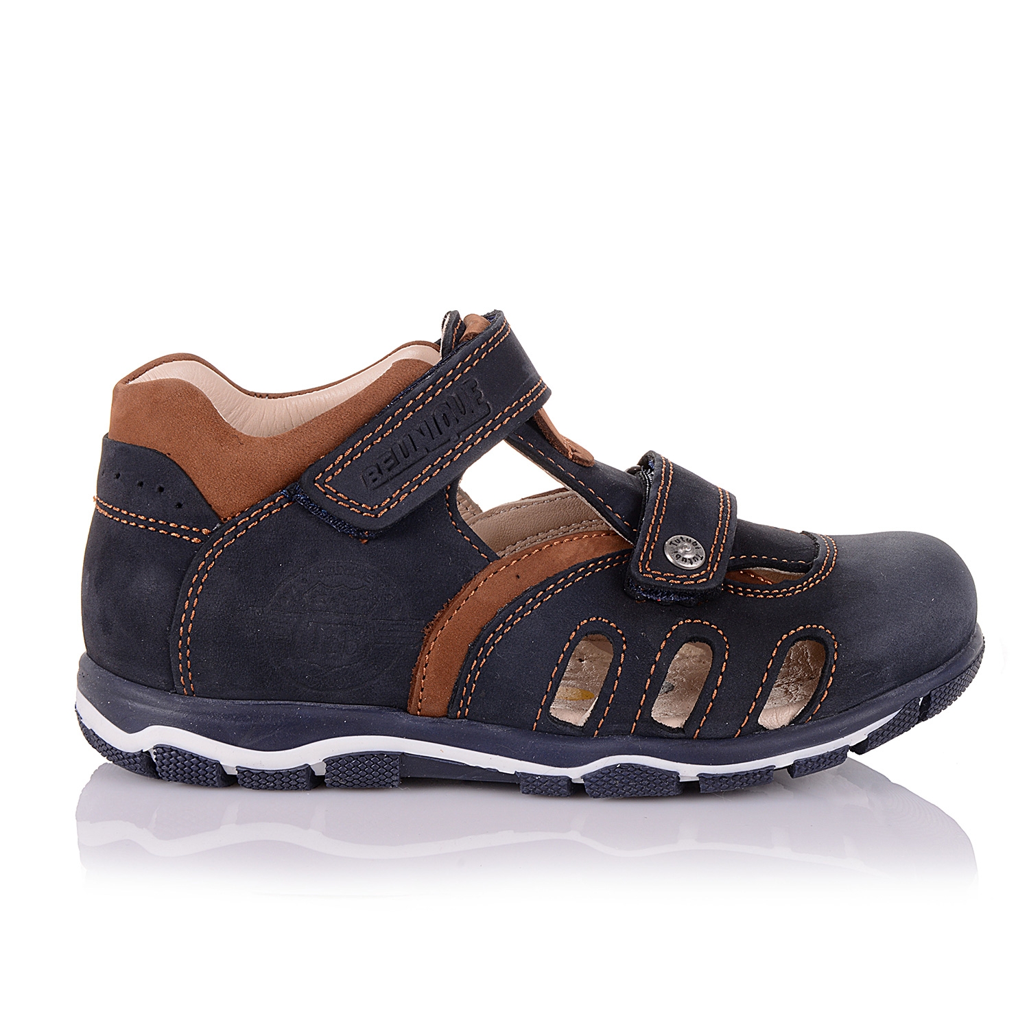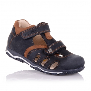 Закрытые ортопедические босоножки черного цвета со вставками коричневого цвета, практичная и ультрамодная модель. Удобная фиксация двумя липучками позволяет подобрать босоножки на ногу разной полноты и высоты свода. Кожаная стелька с супинатором и твердый задник обеспечивают физиологически правильное положение ножки. Анатомическая износостойкая подошва из термокаучука имеет ребристую поверхность которая снимает ударную нагрузку на пяточную кость. В обуви такого качества ваш ребенок будет чувствовать себя уверенно и комфортно!
