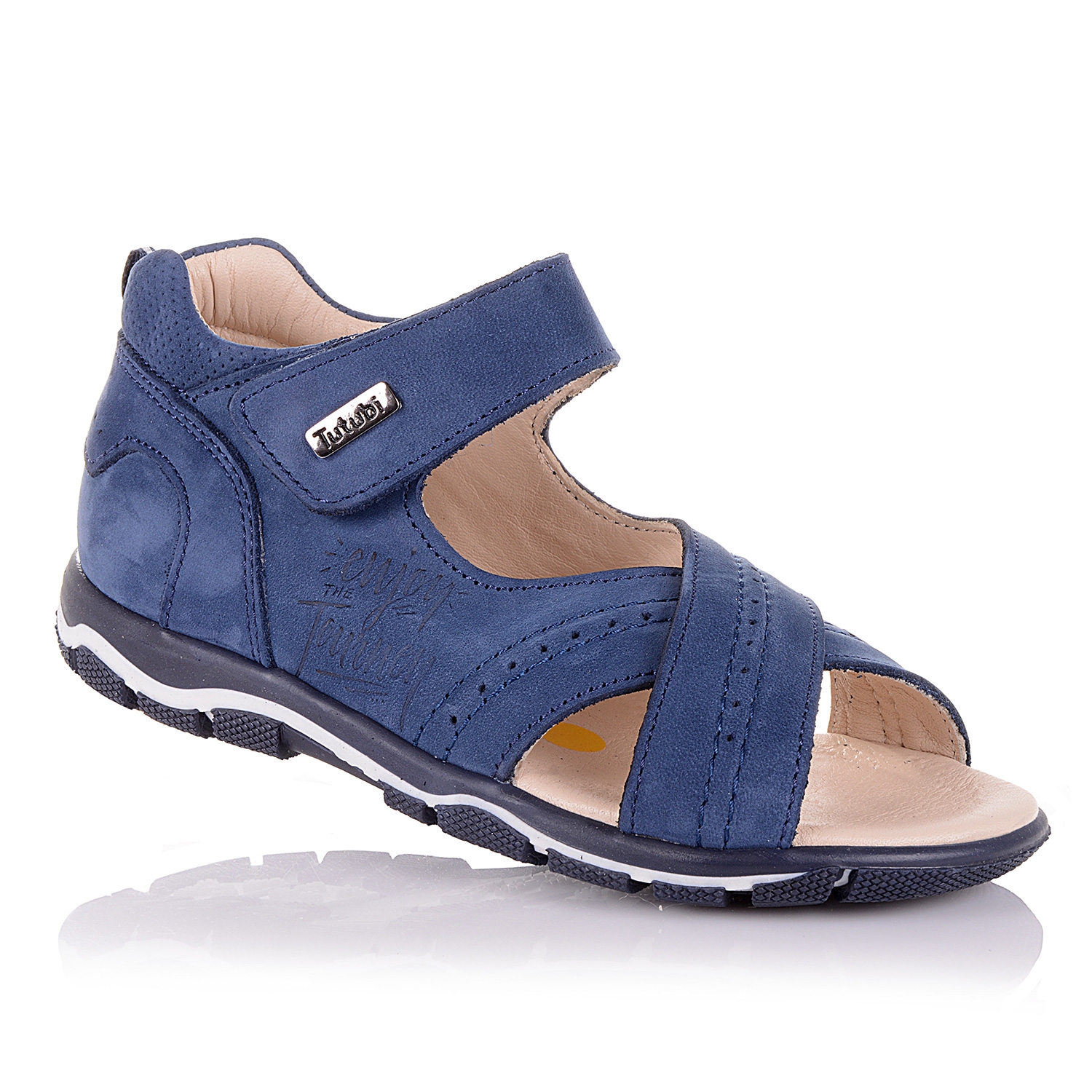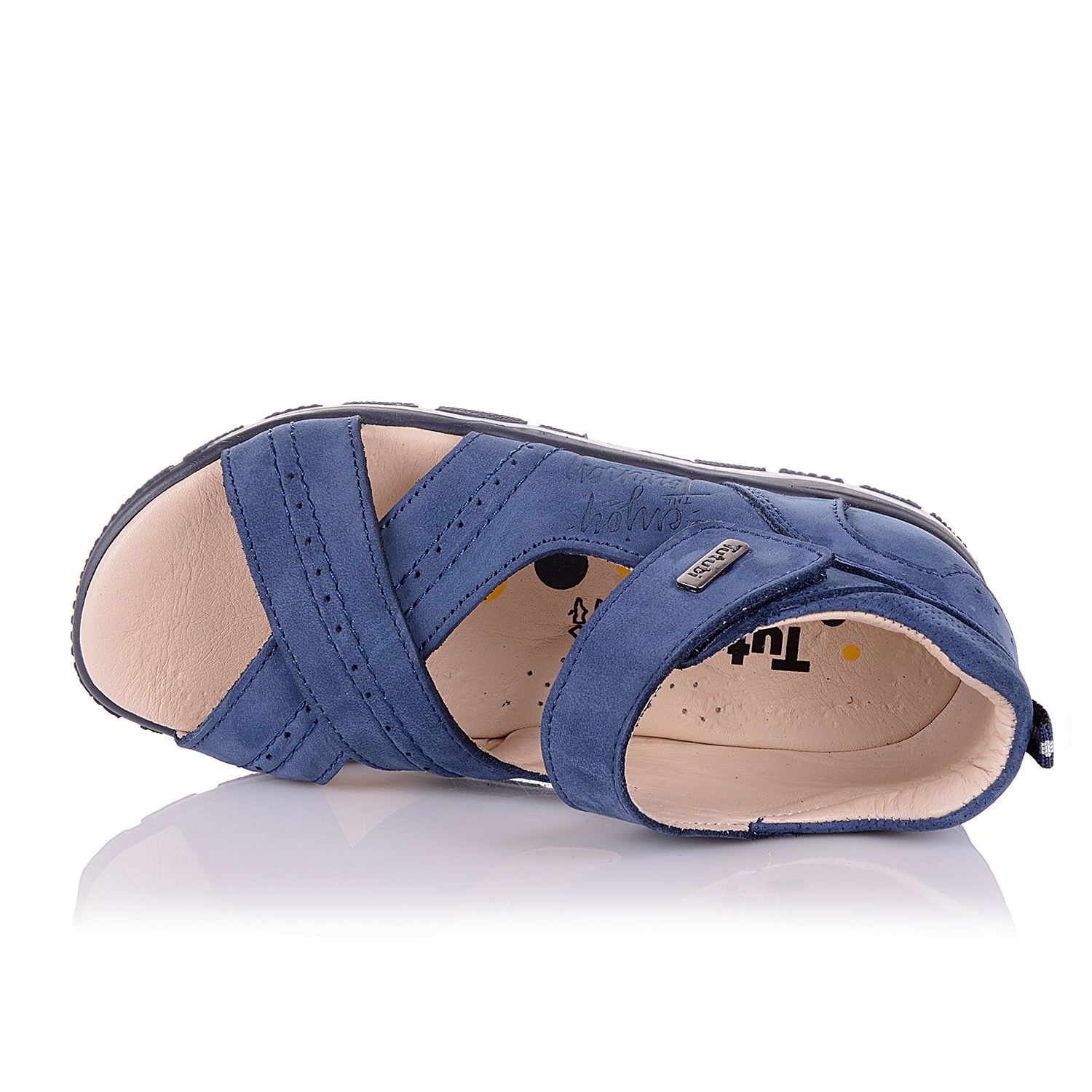 Супер-модные босоножки из натурального нубука синего цвета- ультрамодная модель этого сезона. Внутренняя и внешняя часть изделия выполнена из натуральной кожи. Удобная фиксация на липучке. Стелька с супинатором обеспечивает физиологически правильное положение ножки. Легкая анатомическая износостойкая подошва из термокаучука с антишоковыми вставками, которые снимают ударную нагрузку на пяточную кость. Такая модель идеально подойдет для ежедневных прогулок.
