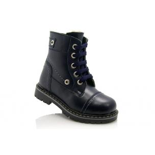 Ботинки ортопедические Woopy orthopedic темно-синего цвета. Сверху на шнурках, с внутренней стороны на молнии. Снаружи кожа, внутри - натуральный мех (цигейка). Высокая твердая пятка и ортопедический супинатор. Высота ботинка 13,5 - 14см (в зависимости от размера).