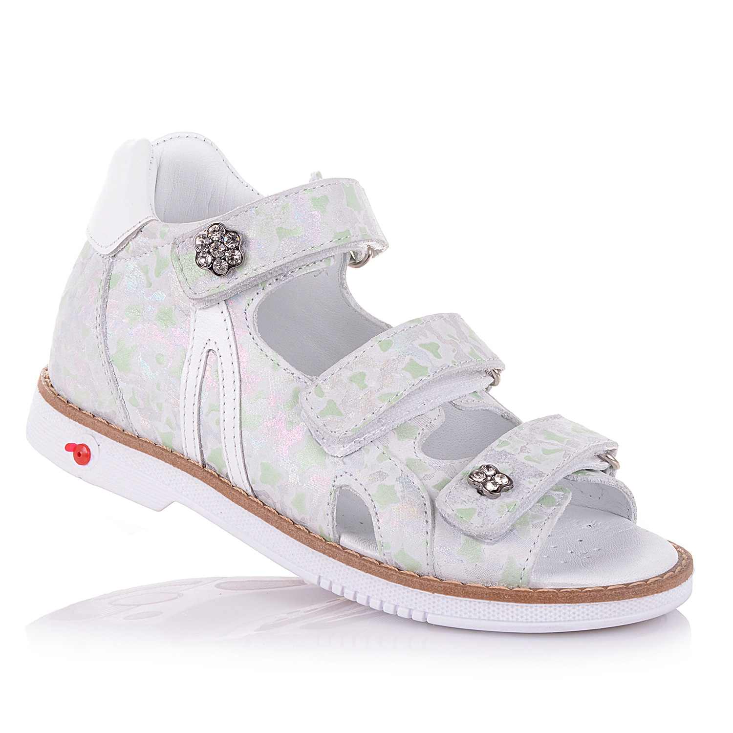 Модные ортопедические босоножки из эксклюзивного цветного нубука станут идеальным дополнением к летнему гардеробу Вашей маленькой модницы, и подойдут практически к любому наряду! А удобная фиксация тремя липучками позволяет подобрать босоножки на ногу разной полноты и высоты свода. Кожаная стелька с супинатором и твердый задник обеспечивают физиологически правильное положение ножки. Подошва, износостойкая из термокаучука, со скошенным каблуком Томаса и антишоковыми вставками, которые снимают ударную нагрузку на пяточную кость.
