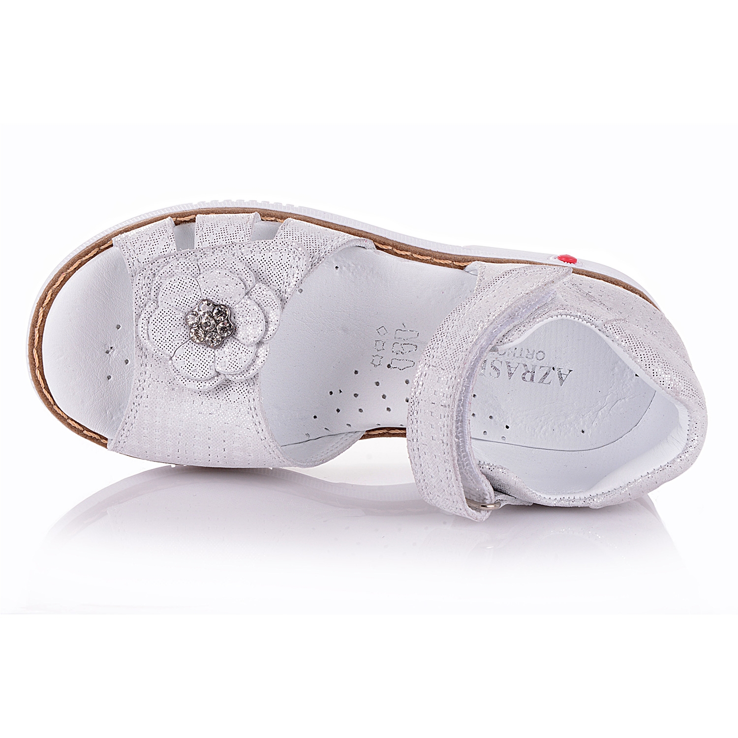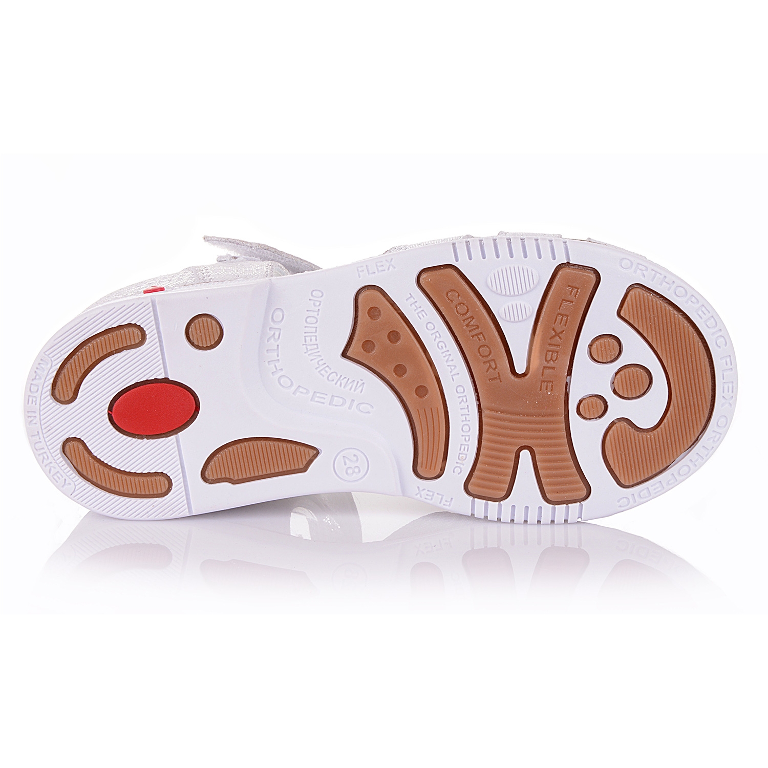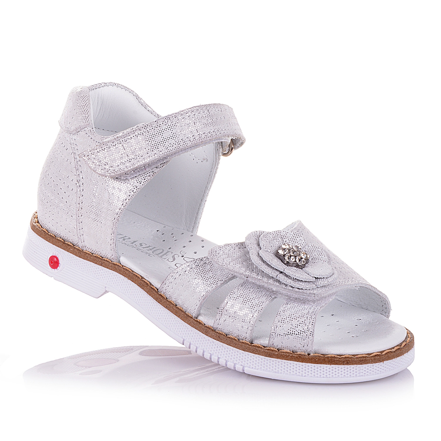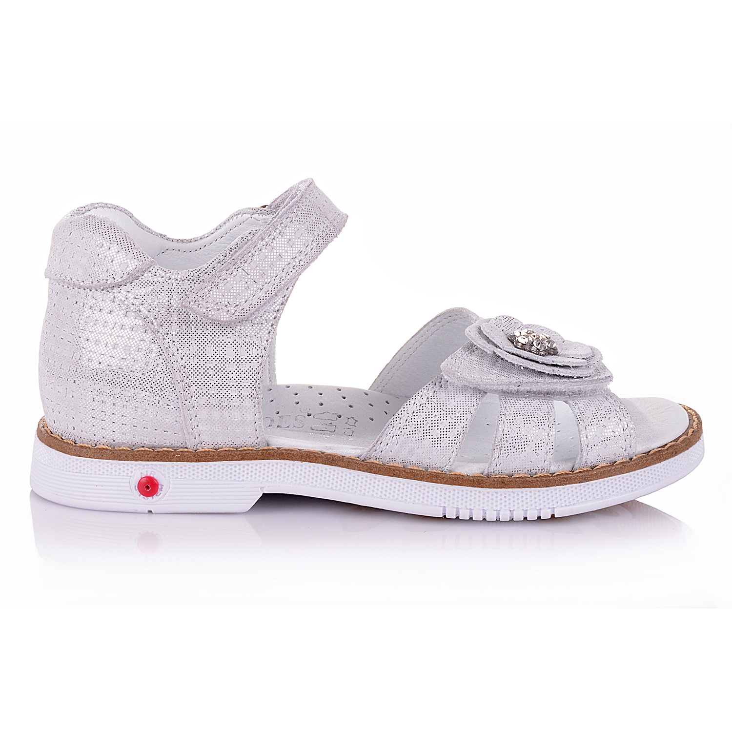 Очень мягкие и красивые босоножки из эксклюзивного серебристого нубука. Удобная фиксация на две липучки позволяет подобрать обувь на ногу разной полноты и высоты свода. Кожаная стелька с супинатором обеспечивают физиологически правильное положение ножки. Анатомическая подошва, износостойкая из термокаучука. В такой паре обуви ребёнок будет себя чувствовать легко и непринуждённо.