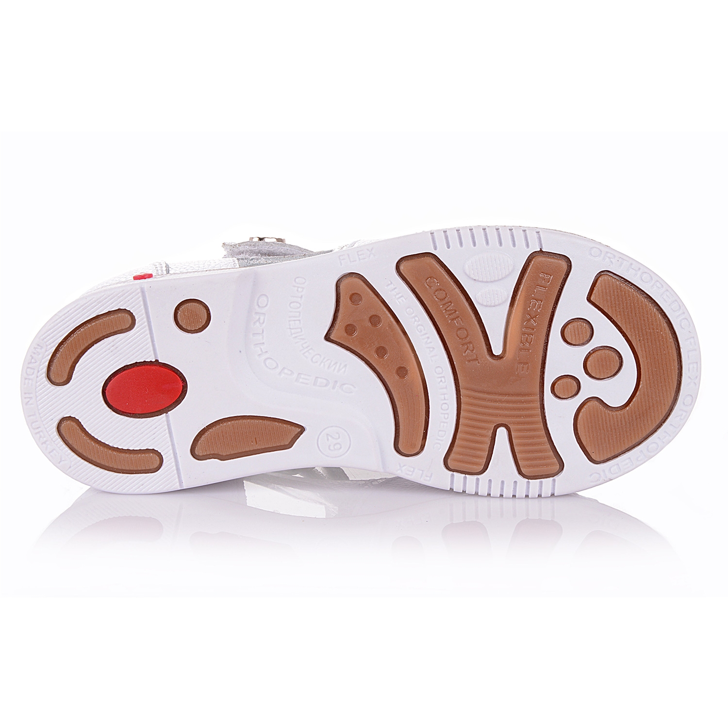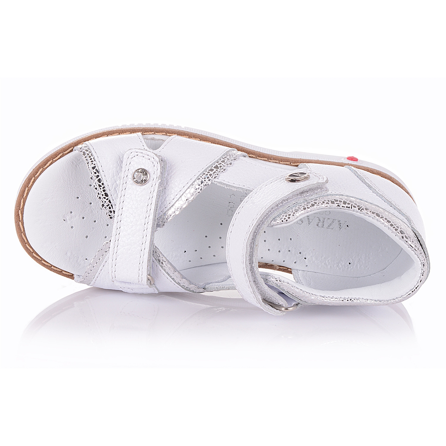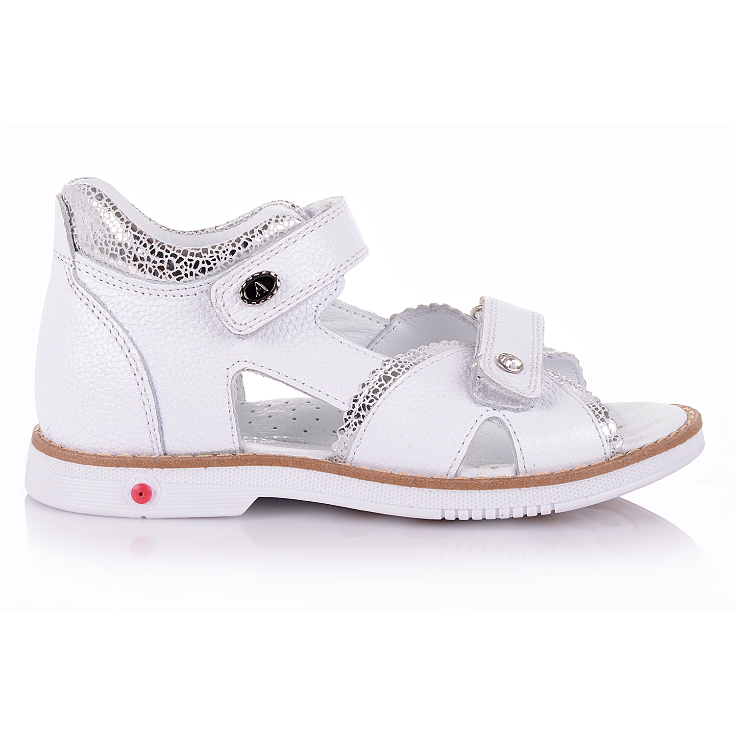 Супер-модные босоножки белого цвета- ультрамодная модель этого сезона. Внутренняя и внешняя часть изделия выполнена из натуральной кожи. Удобная фиксация на две липучки позволяет подобрать обувь на ногу разной полноты и высоты свода. Стелька с супинатором и твердый задник обеспечивают физиологически правильное положение ножки. Легкая анатомическая износостойкая подошва из термокаучука с антишоковыми вставками, которые снимают ударную нагрузку на пяточную кость. Такая модель идеально подойдет для ежедневных прогулок.
