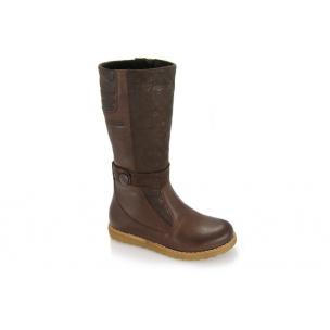 Зимние сапоги коричневого цвета. Снаружи кожа, внутри мех - натуральная цигейка, твердая пятка. Высота сапога 26 - 29,5см в зависимости от размера (без учета подошвы).