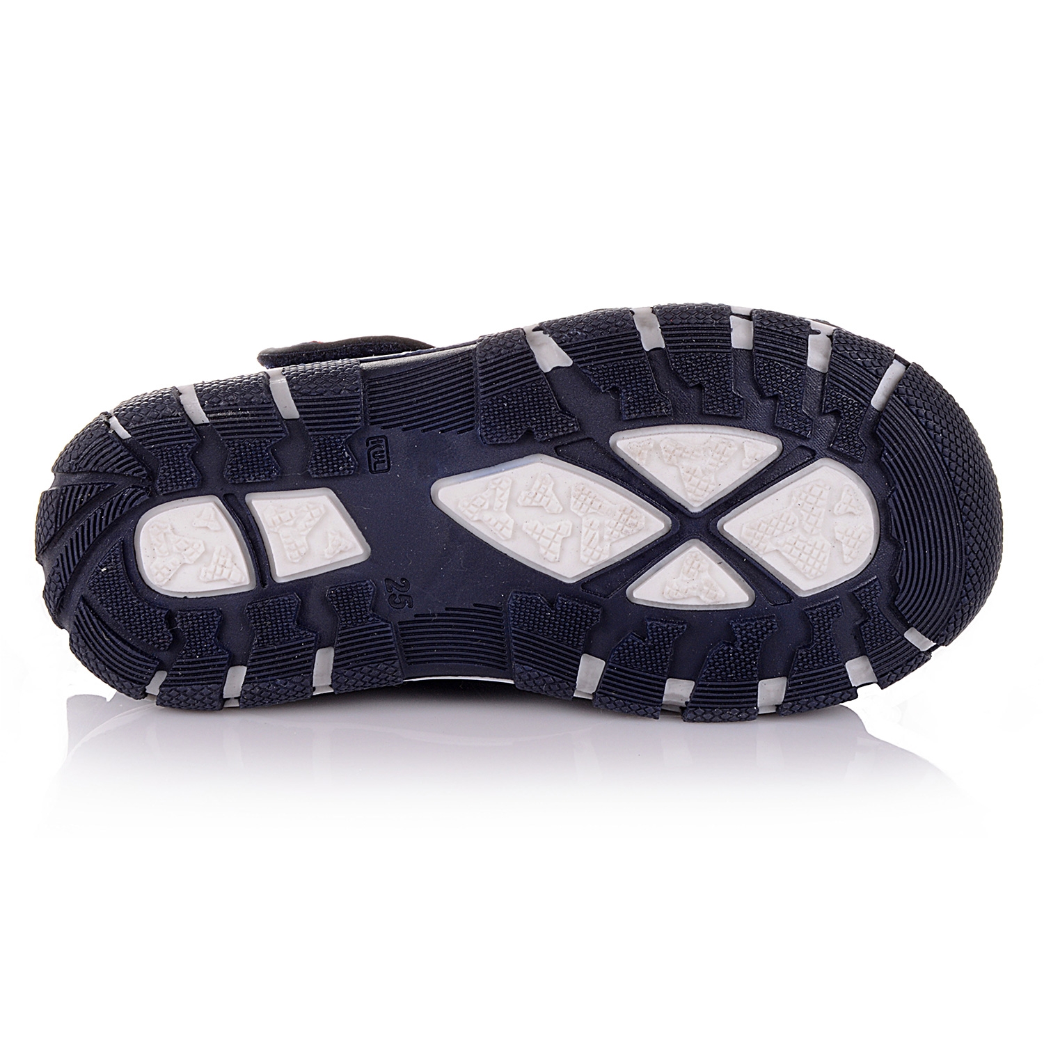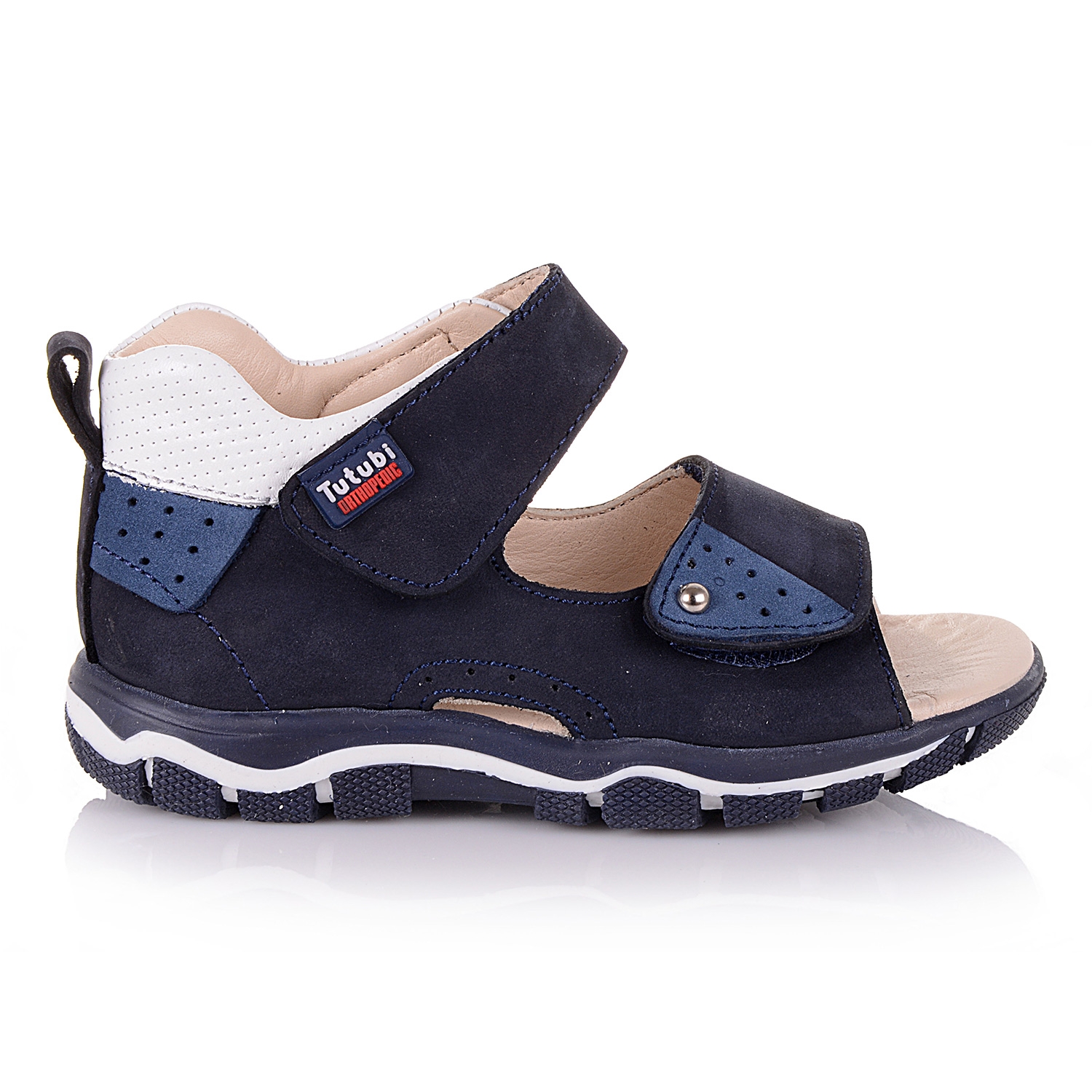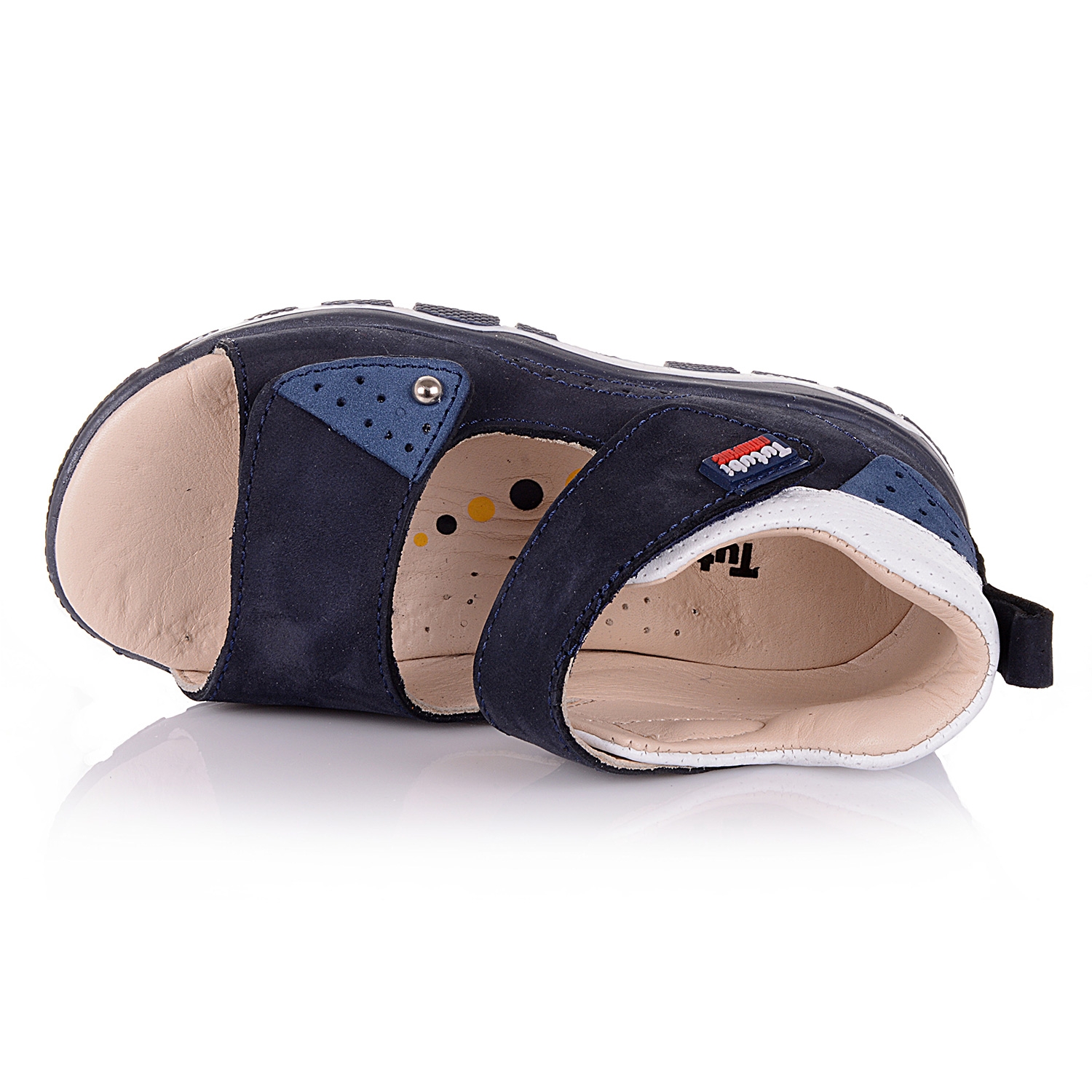 Супер-модные босоножки из натурального нубука темно-синего цвета- ультрамодная модель этого сезона. Внутренняя часть изделия выполнена из натуральной кожи. Удобная фиксация на двух липучках. Стелька с супинатором обеспечивает физиологически правильное положение ножки. Легкая анатомическая износостойкая подошва из термокаучука с антишоковыми вставками, которые снимают ударную нагрузку на пяточную кость. Такая модель идеально подойдет для ежедневных прогулок.