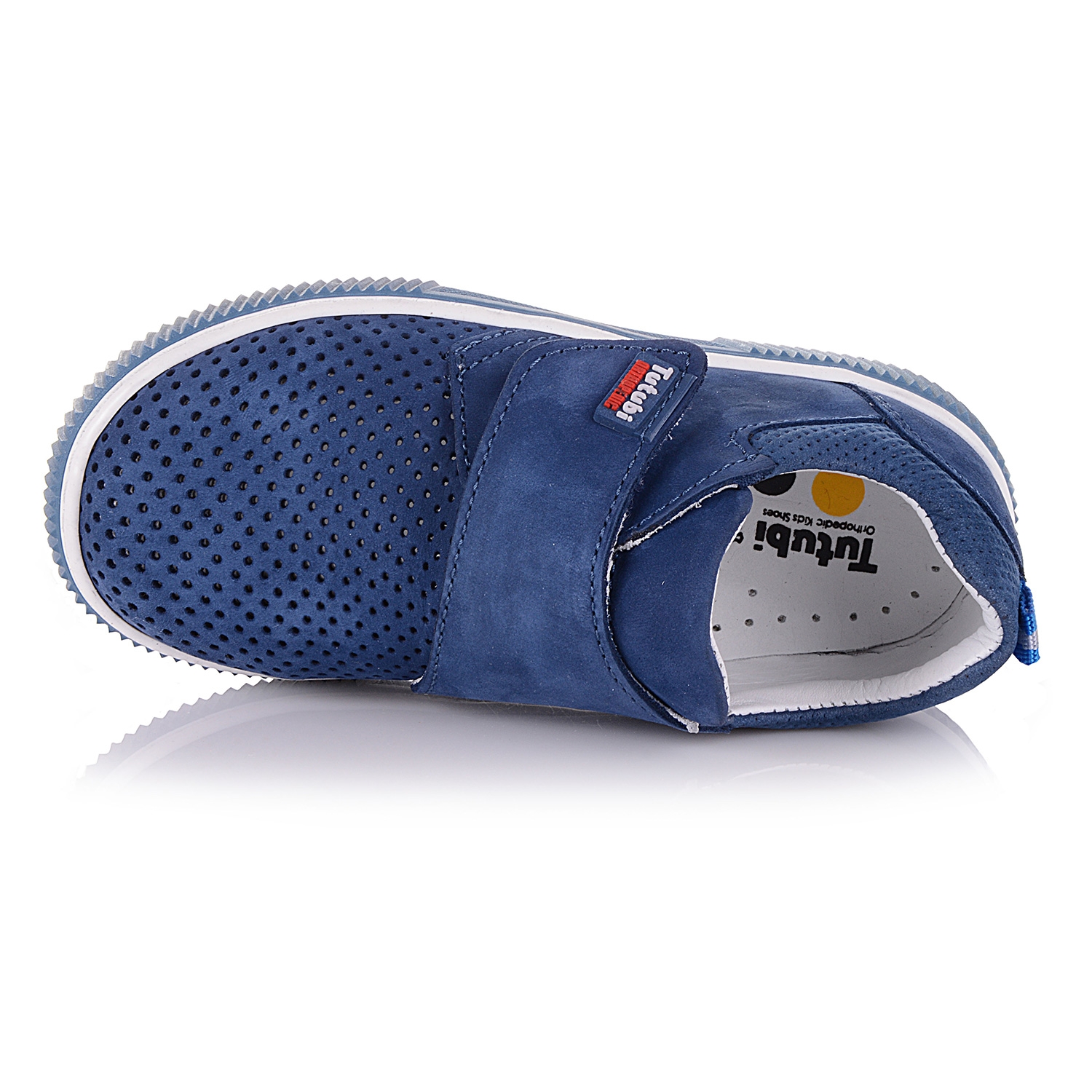 Перфорированные ортопедические мокасины синего цвета из натурального нубука, подойдут практически под любой гардероб на сезон весна-лето. Нога фиксируется липучкой. Внутренняя мягкая кожаная стелька с супинатором и твердый задник обеспечивают физиологически правильное положение ножки. Подошва износостойкая из термокаучука, обеспечивает амортизацию, комфортную походку и хорошее сцепление с твердой поверхностью. Обувь такого качества и дизайна приковывает взгляды!