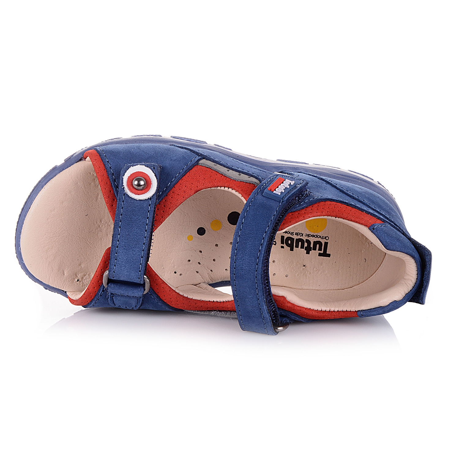 Супер-модные босоножки из натурального нубука синего цвета- ультрамодная модель этого сезона. Внутренняя часть изделия выполнена из натуральной кожи. Удобная фиксация на двух липучках. Стелька с супинатором обеспечивает физиологически правильное положение ножки. Легкая анатомическая износостойкая подошва из термокаучука с антишоковыми вставками, которые снимают ударную нагрузку на пяточную кость. Такая модель идеально подойдет для ежедневных прогулок.