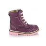 Ботинки ортопедические Woopy orthopedic баклажанового цвета. Сверху на шнурках, с внутренней стороны на молнии. Снаружи кожа, внутри - натуральный мех (цигейка). Высокая твердая пятка и ортопедический супинатор. Высота ботинка 14 - 16 см (в зависимости от размера).