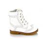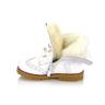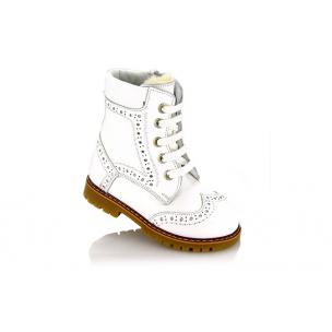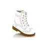 Ботинки ортопедические Woopy orthopedic белого цвета. Сверху на шнурках, с внутренней стороны на молнии. Снаружи кожа, внутри - натуральный мех (цигейка). Высокая твердая пятка и ортопедический супинатор. Высота ботинка 14 - 16 см (в зависимости от размера).
