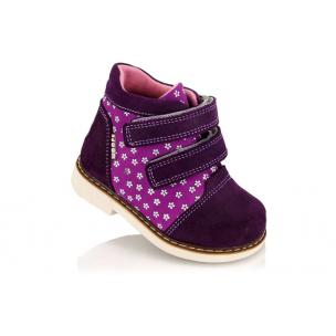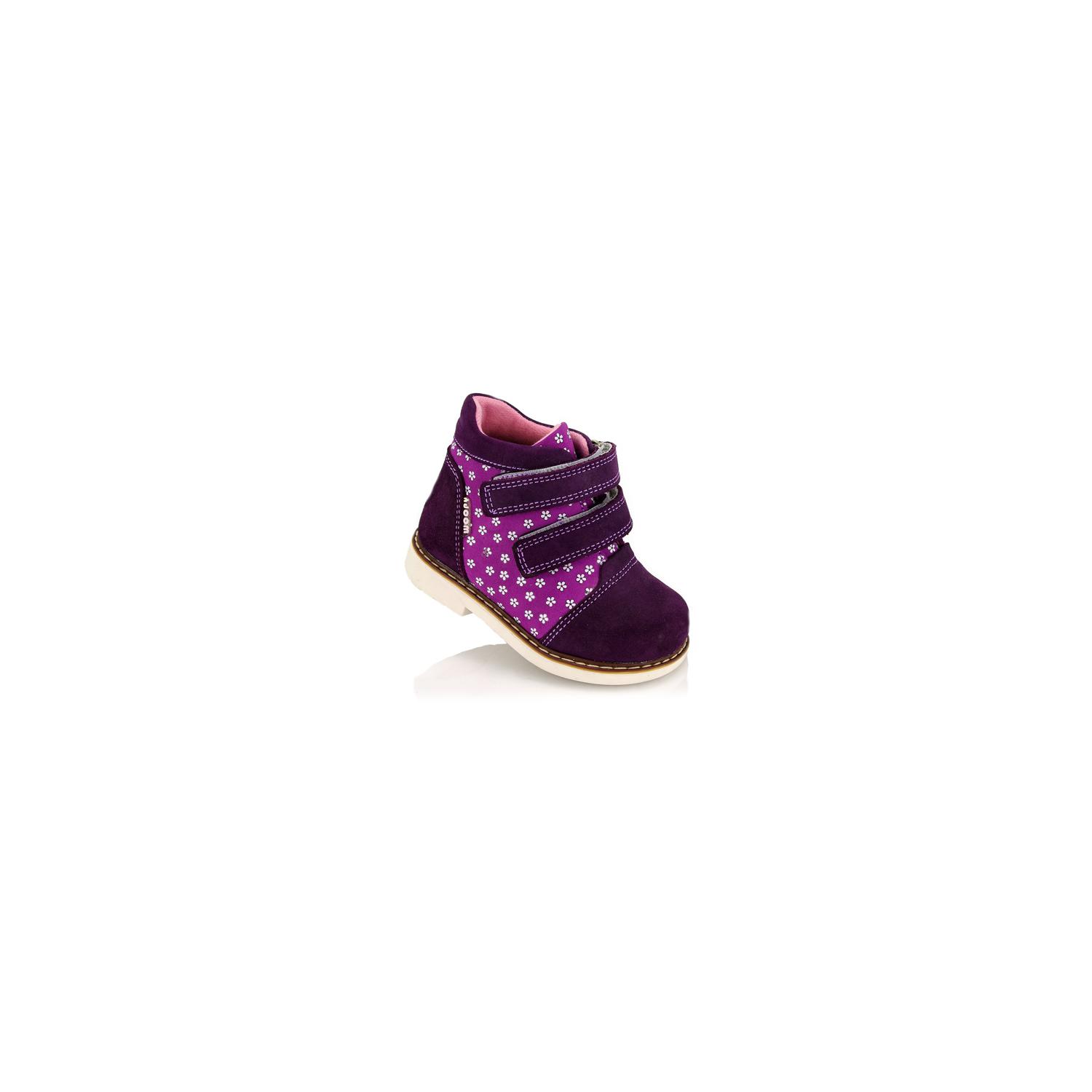 Ботинки ортопедические Woopy orthopedic фиолетового цвета с сиреневыми вставками. Сверху регулируются двумя липучками. Снаружи нубук, внутри - флис. Высокая твердая пятка, супинатор и ортопедический каблук Томаса.
