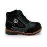 Ботинки ортопедические Woopy orthopedic черного цвета с серыми вставками. Сверху регулируются шнурками, сбоку на молнии. Снаружи нубук, внутри - флис. Высокая твердая пятка, супинатор и ортопедический каблук Томаса.