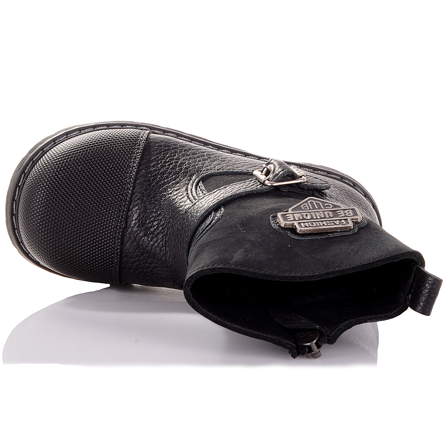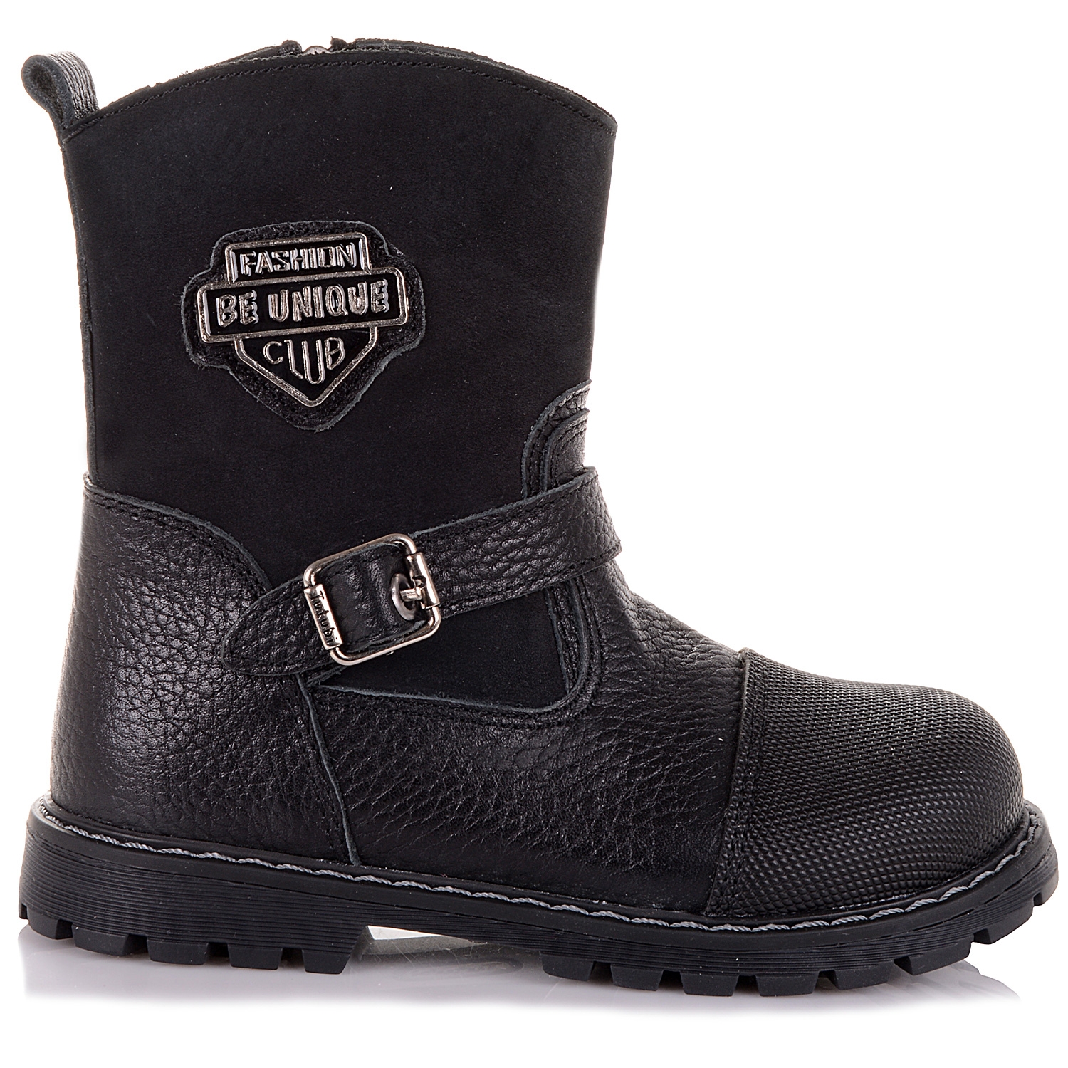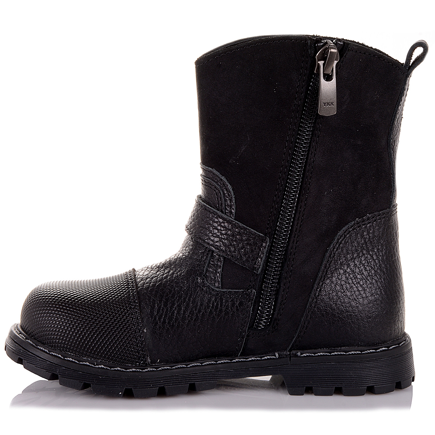 Демісезонні черевики з нубуку та шкіри – гарне та практичне взуття, яке однаково добре підходить як хлопчикам, так і дівчаткам. Завдяки сучасному лаконічному дизайну носити таке взуття можуть навіть дорослі. Модель утеплена флісом. Цей матеріал забезпечує оптимальну терморегуляцію, дозволяє зберігати тепло та сухість усередині взуття. Ортопедична підошва дозволяє рівномірно розподіляти навантаження по усій стопі, підтримуючи її середню частину. Спеціальна амортизуюча вставка знижує тиск і ударні навантаження на стопу під час ходи. Черевики застібаються на бокову блискавку.
