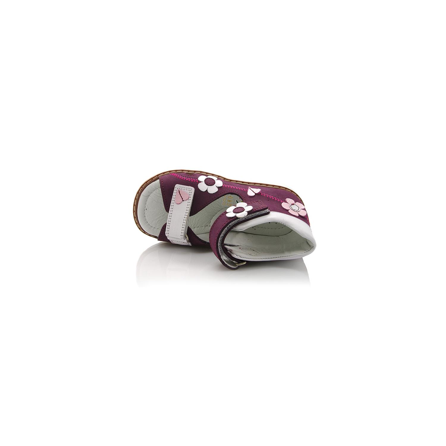 Босоножки ортопедические Woopy orthopedic фиолетово-бордового цвета с цветочками. Фиксируются двумя липучками. Снаружи нубук, внутри кожа. Высокая твердая пятка, супинатор и ортопедический каблук Томаса.