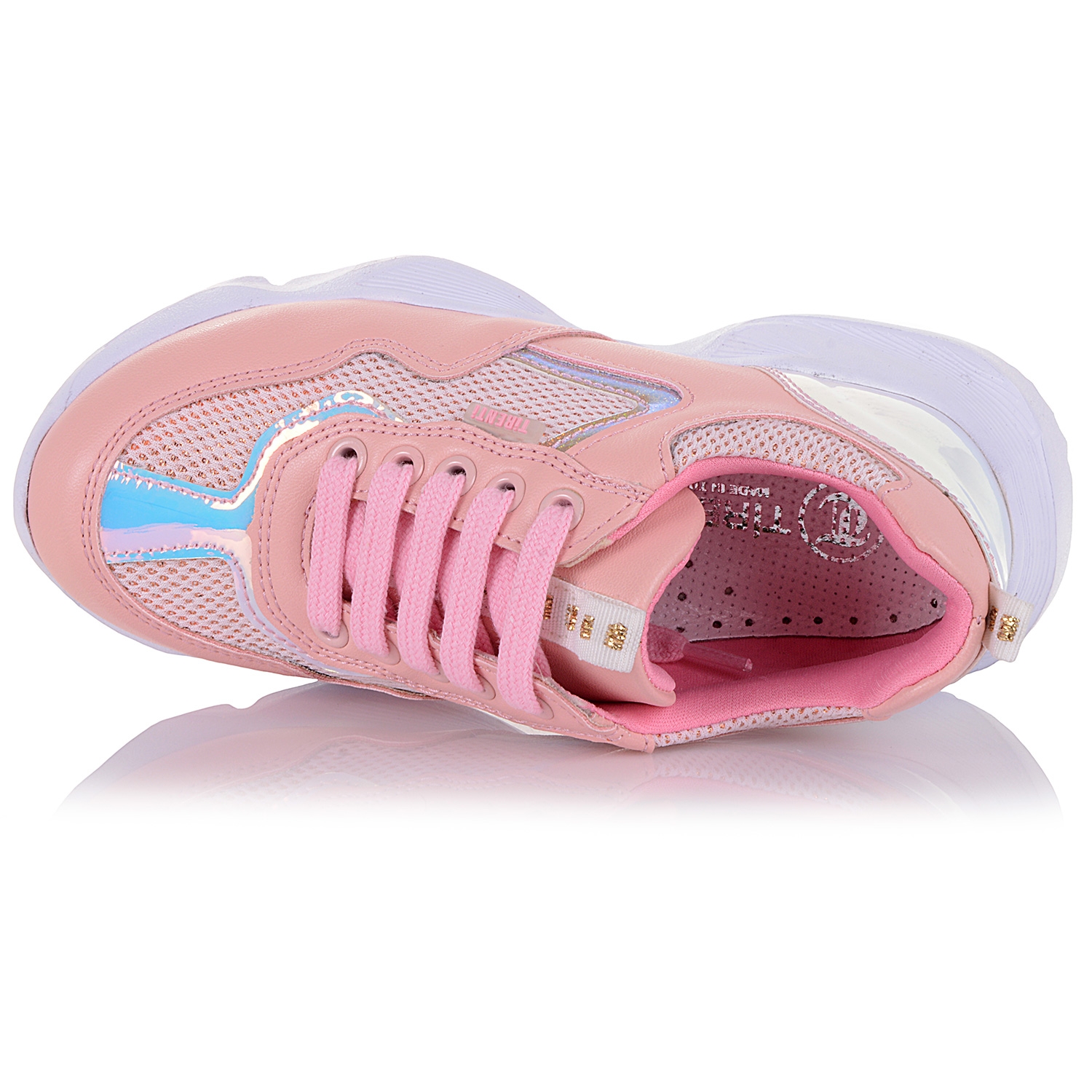 Бути по-спортивному гарною та вільною так просто в нових кросівках від Tirenti! Модель в «спокійному» рожевому кольорі, з ефектними переливчатими вставками урізноманітнить повсякденний образ та надихне на нові досягнення. Трендовий масивний силует з акцентом на п'яту компенсований акуратним носом. Верх виконаний з екошкіри та текстилю (сітчасті вставки). М'який італійський текстиль всередині взуття приємний на дотик. Жорсткий задник щільно облягає стопу, утримуючи її при ривках. Шкіряна устілка з супінатором і спеціальними отворами знижує ударне навантаження на суглоби, контролює відведення вологи під час інтенсивних прогулянок або бігу. Біла масивна підошва з рельєфними елементами перешкоджає ковзанню, амортизує крок; стійка до стирання.
