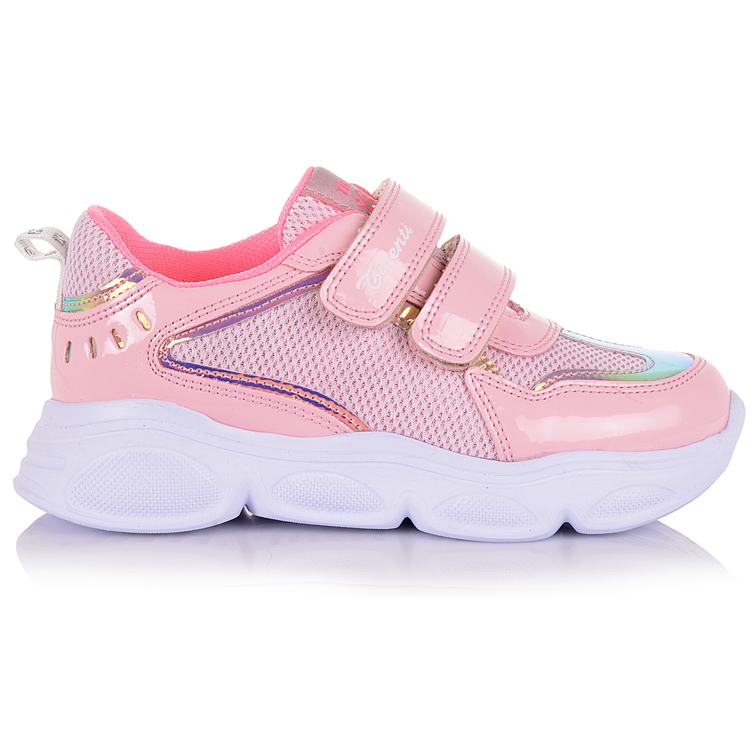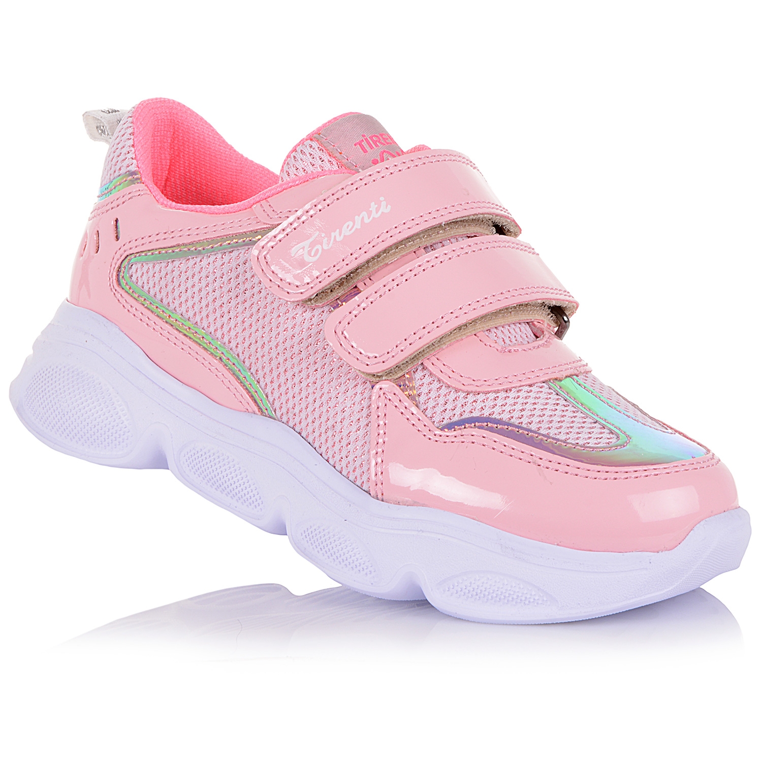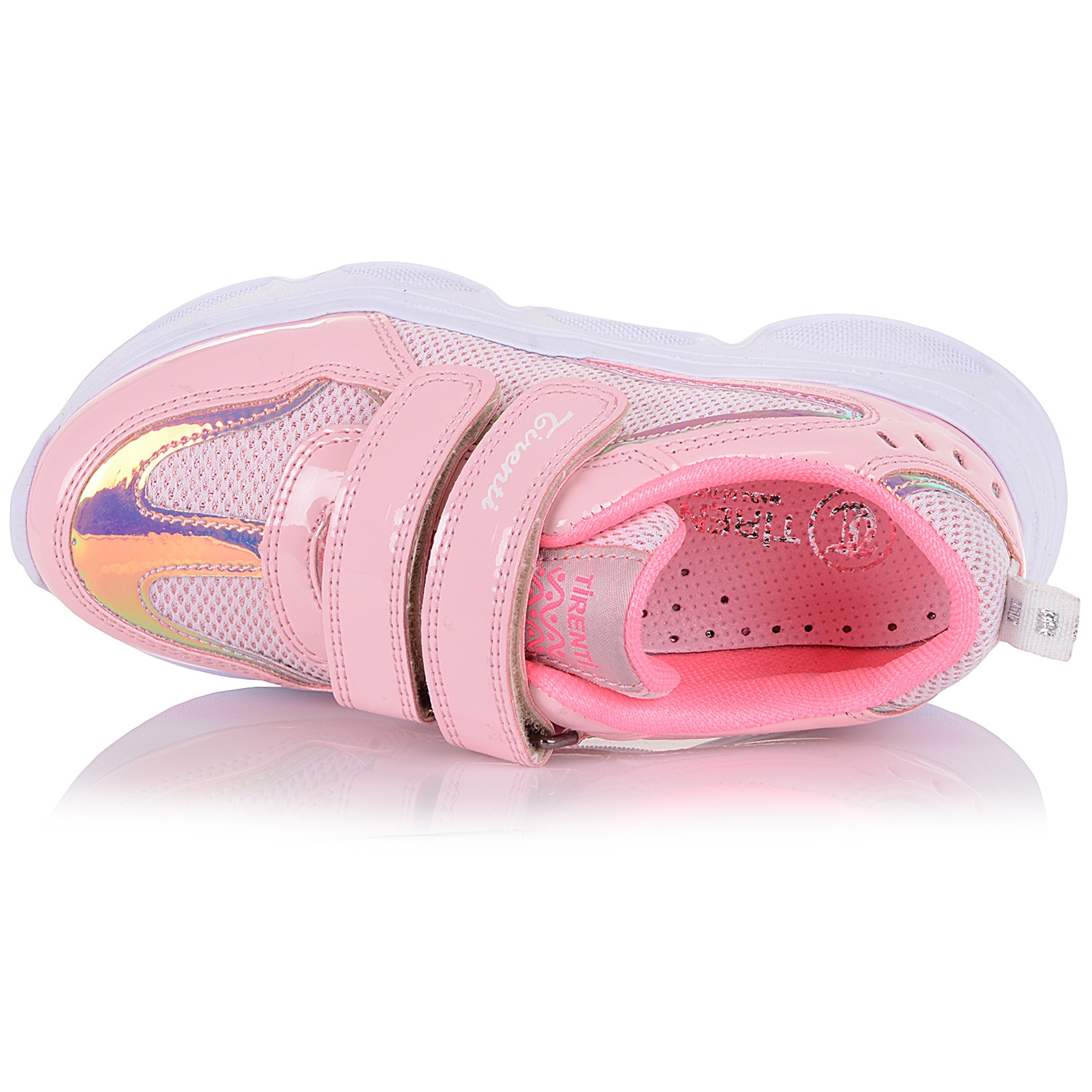 Кросівки з лаковими вставками урізноманітнять повсякденний образ, додавши до спортивного стилю жіночність та елегантність. Модель виконана в рожевому кольорі. Добре поєднується з повсякденним одягом. Сітчастий верх і внутрішня частина взуття виготовлені з текстилю. Шкіряна устілка з супінатором і спеціальними отворами знижує ударне навантаження на суглоби, контролює відведення вологи під час інтенсивних прогулянок або бігу. Рельєфна підошва з термоеластопласту стійка до стирання, амортизує крок, захищає стопу від пошкоджень. Завдяки липучкам кросівки легко та надійно фіксуються на ногах.